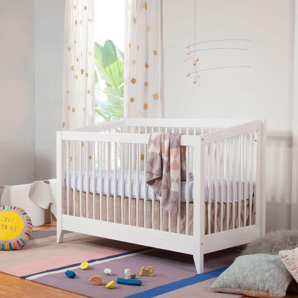 Add new dimension and geometric playfulness to your modern nursery with the Sprout 4-in-1 Convertible Crib. Tapered spindles and triangular feet bring nostalgic charm to this crib’s modern shape. And with a subtle raised back, Sprout can grow with your babe with a smart full-size bed conversion. Made with sustainable pine wood and GREENGUARD Gold certified to improve indoor air quality.