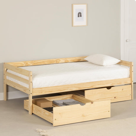 Solid Wood Daybed with Storage Drawers - Sweedi Natural Wood