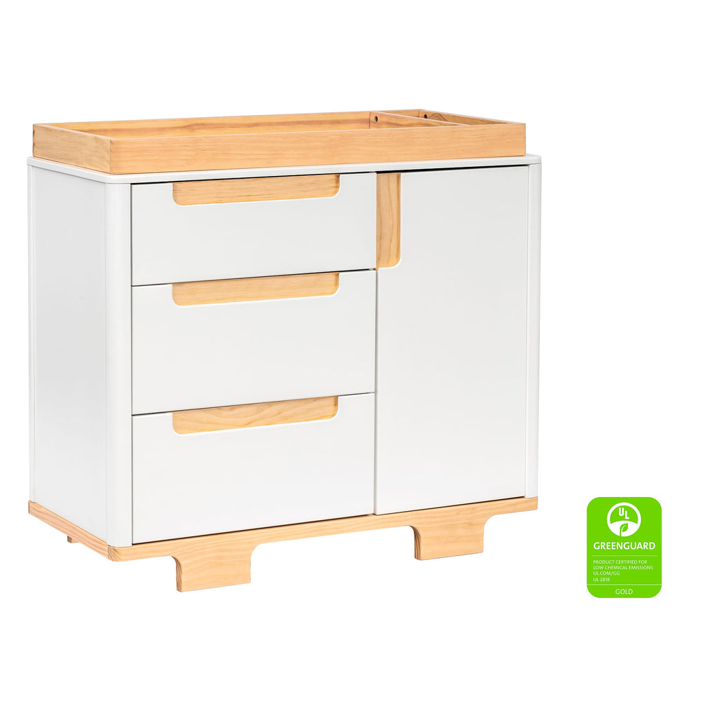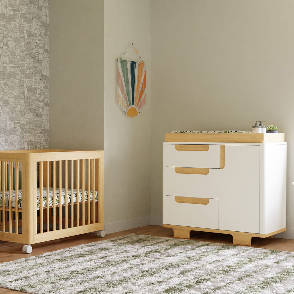 Designed to complement the Yuzu 8-in-1 All-Stages Crib, the Yuzu 3-Drawer Changer Dresser marries form and function with playful arched feet, gently curved corners, included changing tray, and plenty of storage with 3 drawers and 1 spacious cabinet. Whether you're going for a classic, modern, or eclectic look, this versatile dresser is a perfect statement piece in the nursery.