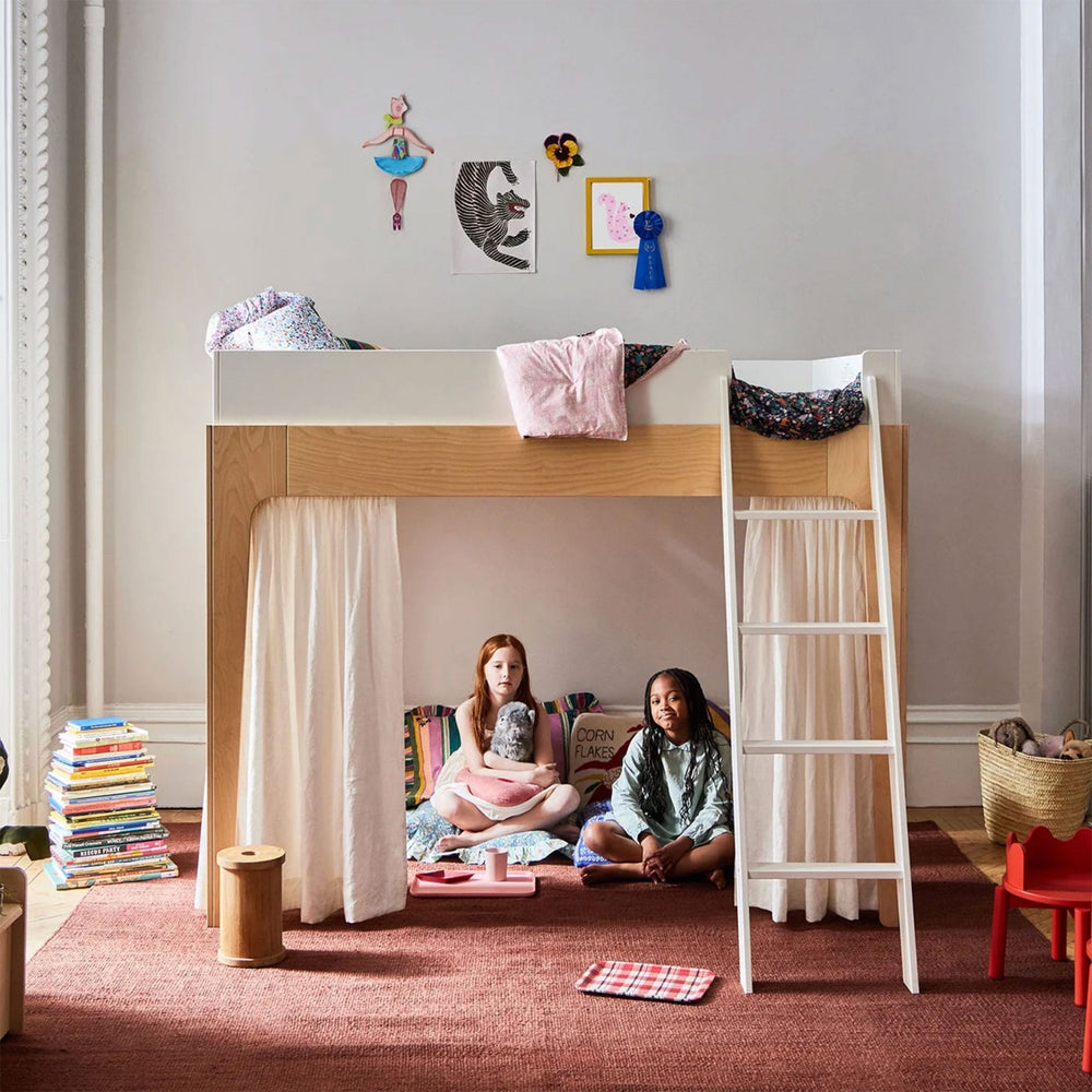 From the coziest brownstone to the most generous of ramblers, The Perch Full Size Loft Bed is transforming bedrooms with its space-saving floor plan and durable, practical good looks. The kid-friendly ladder angle makes for easy climbing, and a safety wall around the top helps kids (and parents) sleep tight. Utilize the extra space under the Perch Full Size Loft Bed by putting a Brooklyn Desk, Mini Library or Toy storage to create a study space, lounge space or extra spot for storing books & toys.