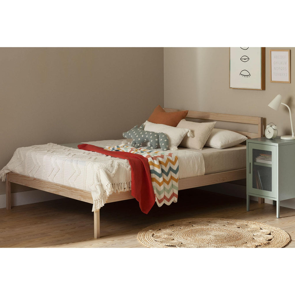 This pinewood bed base and headboard will look stunning in your little one’s bedroom with its warm and minimalist look that’s ideal for relaxation. Its sleek design with its thin legs and straight lines makes it easy to match any decor. You could even plan a creative activity with your child and paint the base of the bed in the color of your choice to match their room!