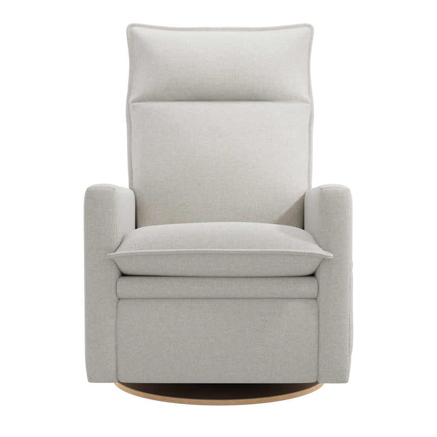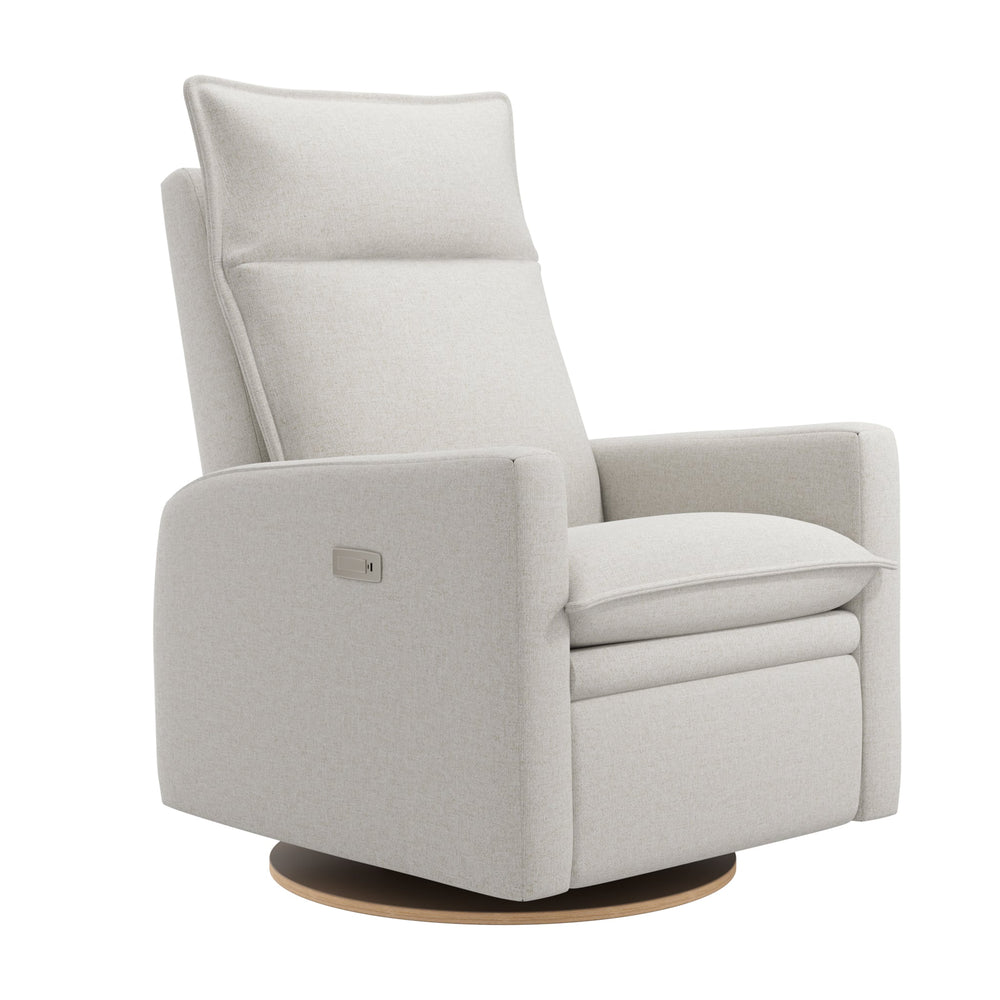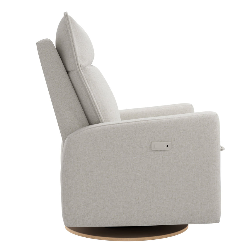 The new Arya electric recliner offers baby's rooms a sleek, relaxed, and comfortable style with plush cushions, which allow you to sink into the chair to find the ideal relaxing position. The electric version offers smooth motorized recliner, with a control panel in the armrest that features buttons that control the recline mechanism, as well as a USB and USB-C port so you can have electronic devices within reach. The recliner swivels with a smooth gliding motion, so you won't disturb your little one's sleep while you get comfortable.