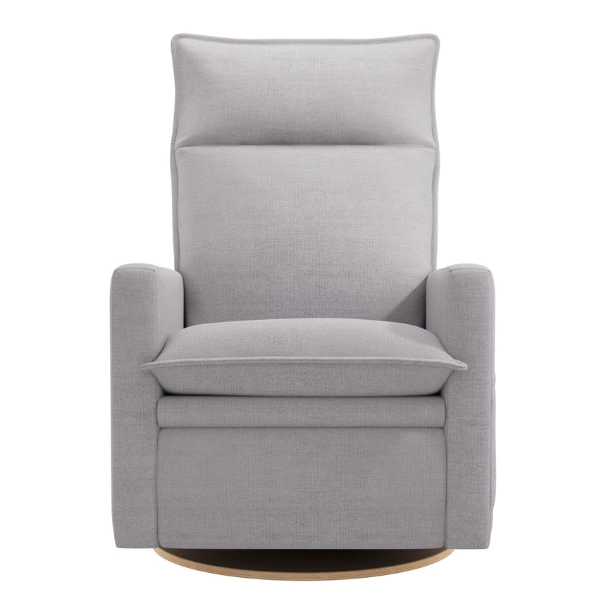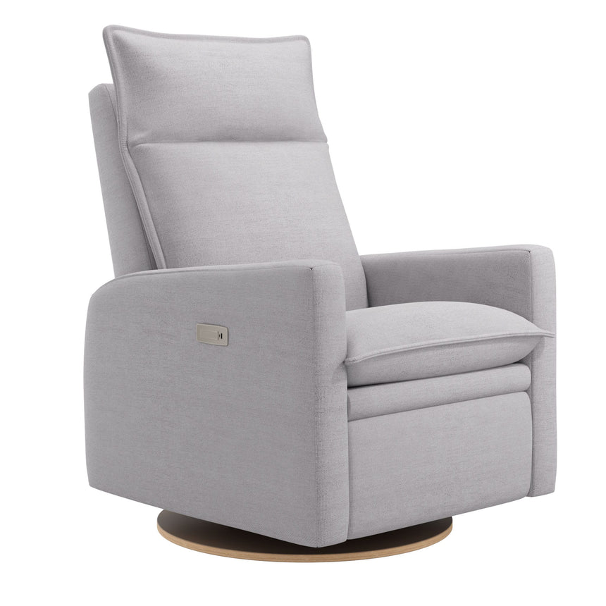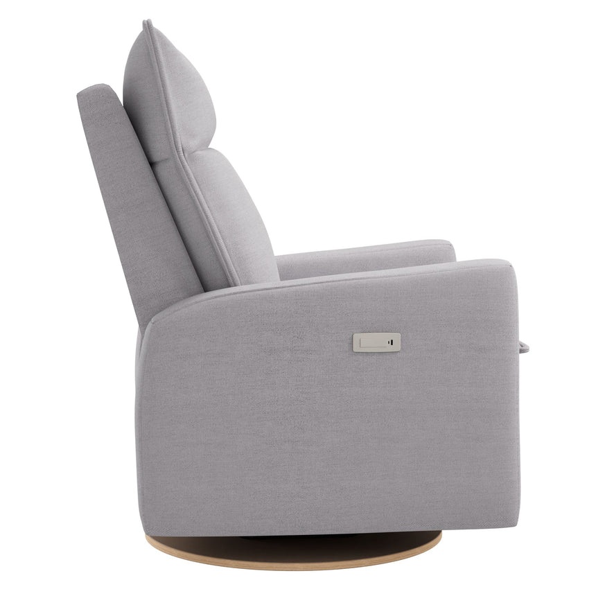 The new Arya electric recliner offers baby's rooms a sleek, relaxed, and comfortable style with plush cushions, which allow you to sink into the chair to find the ideal relaxing position. The electric version offers smooth motorized recliner, with a control panel in the armrest that features buttons that control the recline mechanism, as well as a USB and USB-C port so you can have electronic devices within reach. The recliner swivels with a smooth gliding motion, so you won't disturb your little one's sleep while you get comfortable.