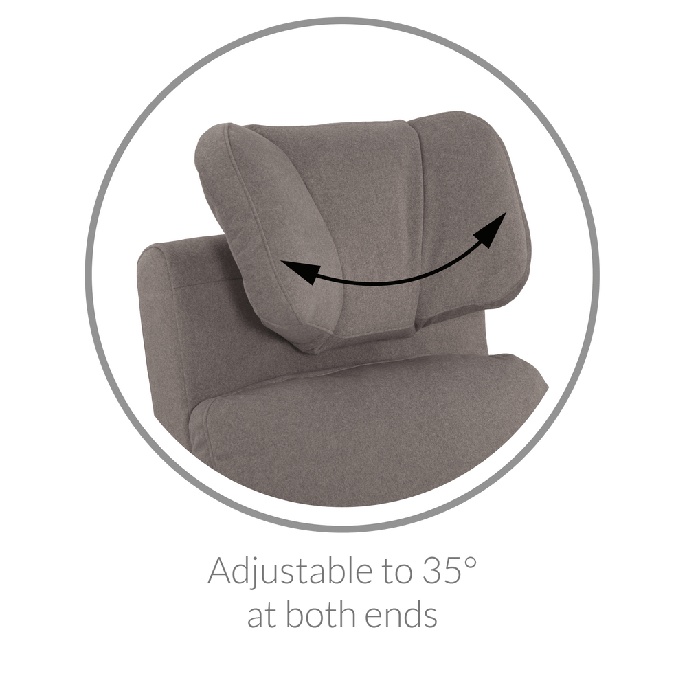 The new Hailey recliner with an adjustable winged headrest offers a unique enveloping design that provides a sense of security and optimal comfort, perfect for long nights or moments of relaxation. This headrest, inspired by the aeronautical industry, is designed to offer personalized comfort with its adjustable height, adapting to the specific needs of each parent. Its foldable or collapsible side wings provide additional support by keeping the head in a stable and ergonomic position, preventing it from tilting to the sides—particularly useful during sleep or prolonged rest periods.