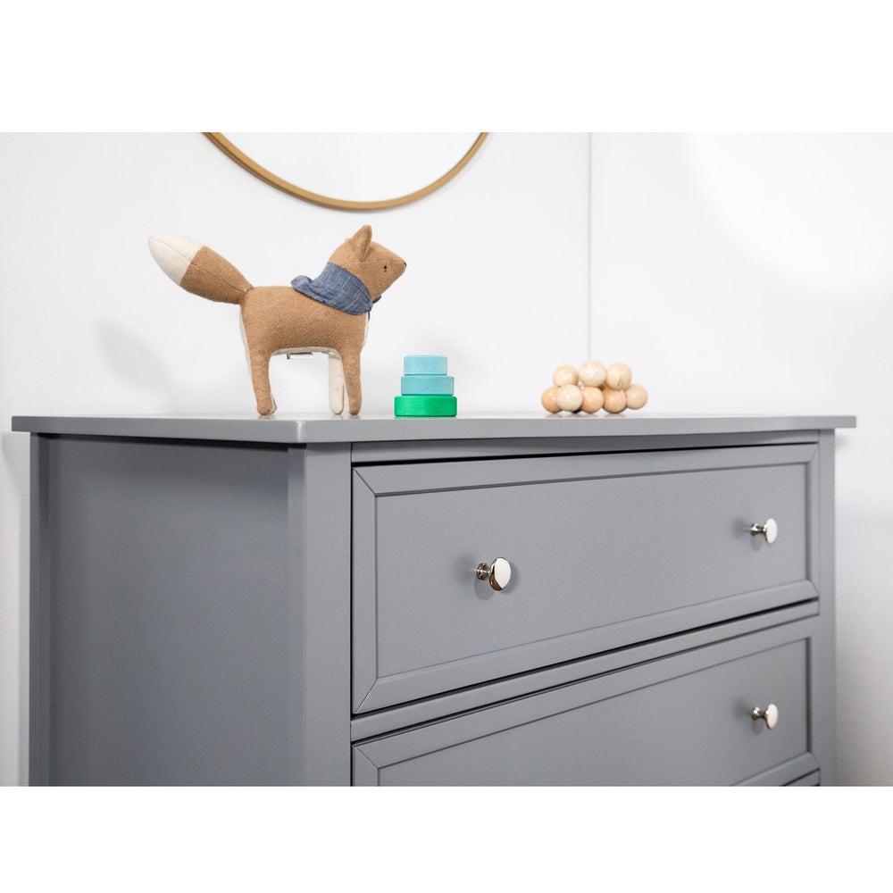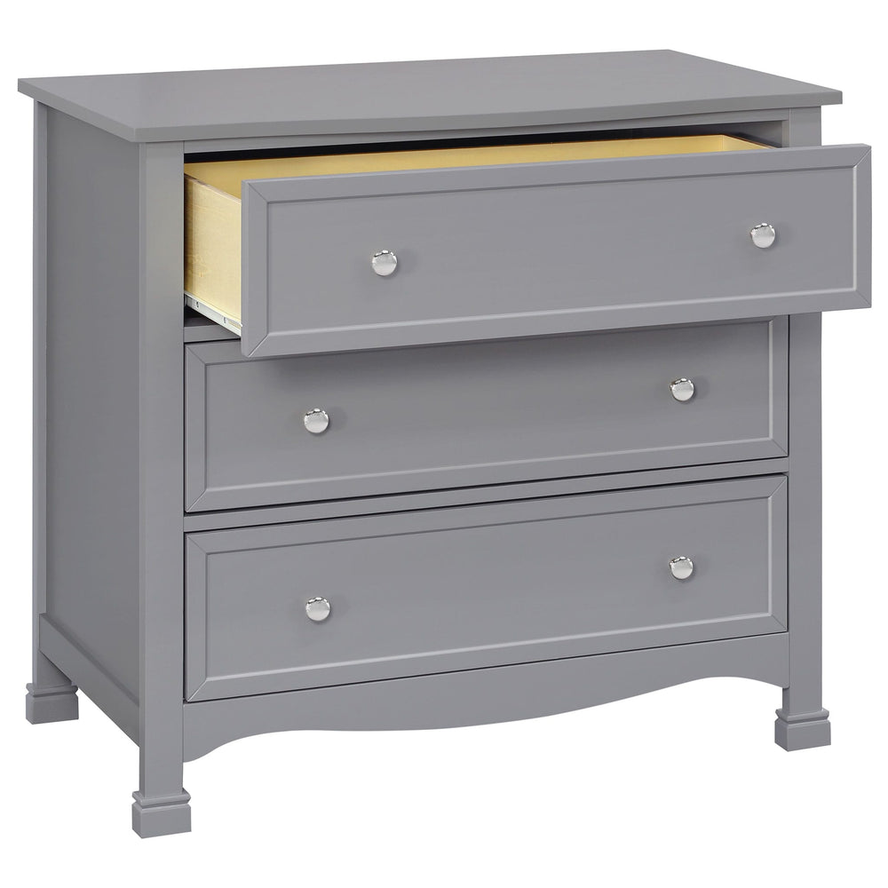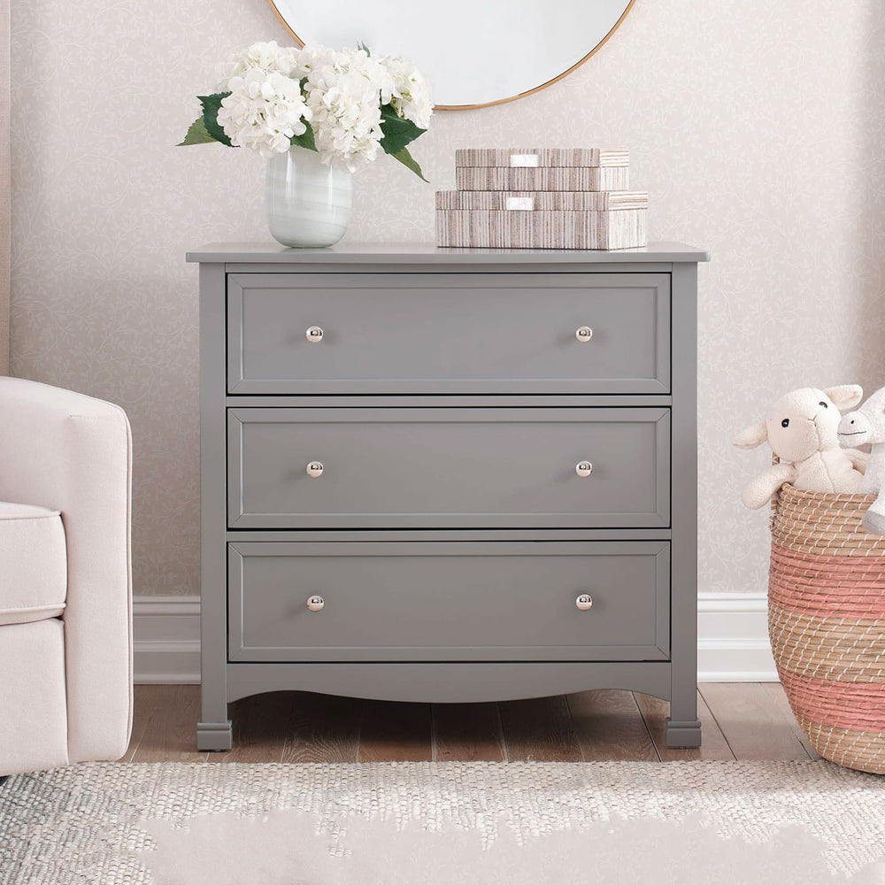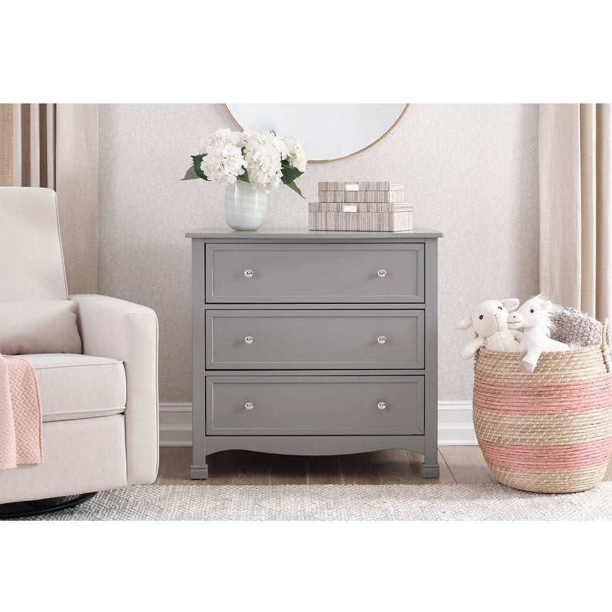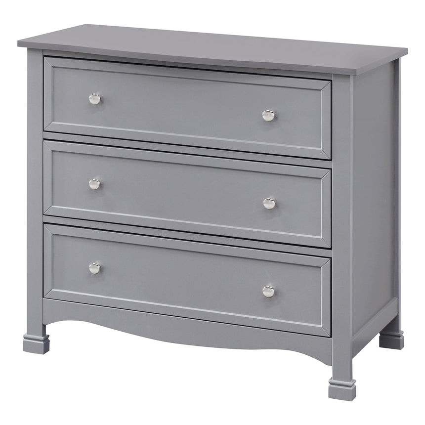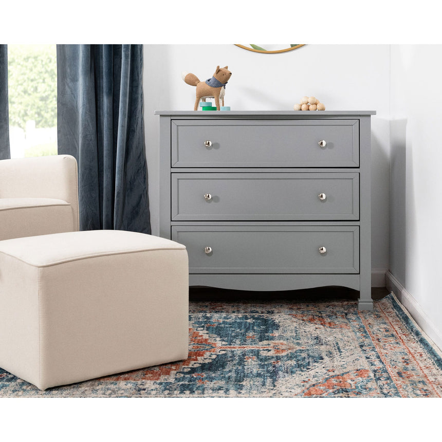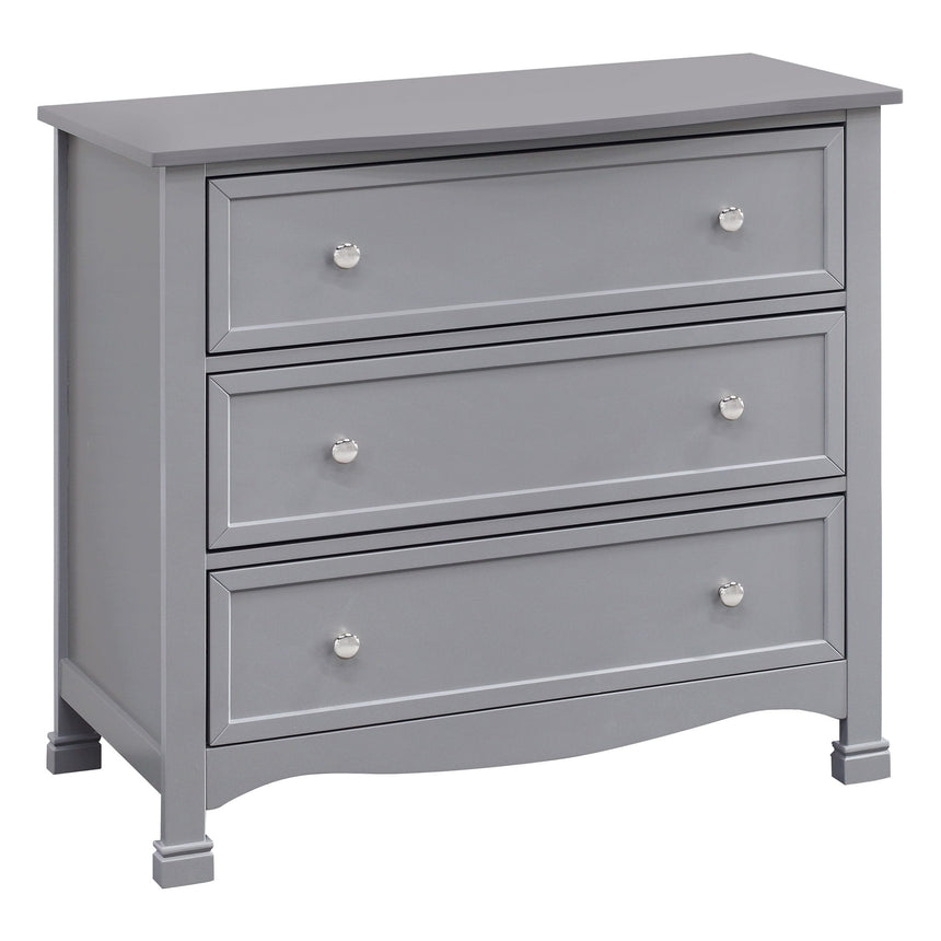 The Kalani 3 Drawer Dresser is the smart changing and storage solution for the classic Kalani collection. Three roomy drawers provide ample storage to simplify organization while thoughtful design ensures a style fit for any nursery. The dresser is detailed with recessed front drawer panels, a gently curved apron front and curved top sides.