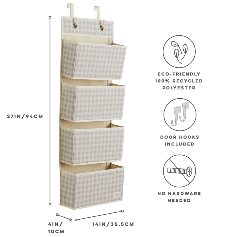 -Materials: 100% recycled polyester fabric with carton board inserts; hooks: plastic (polypropylene)