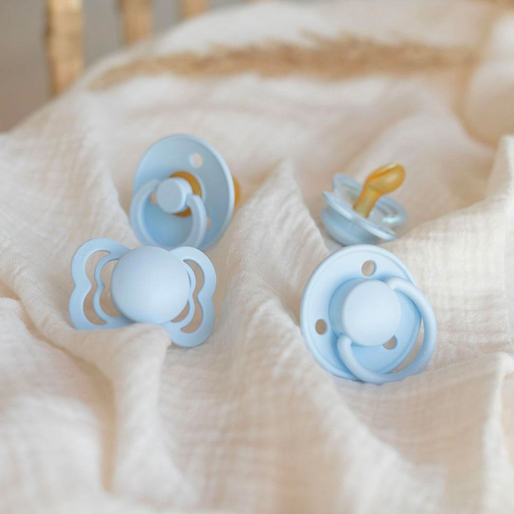 It's important to try out different shapes and sizes to find the perfect fit for your baby. Therefore, we have launched the BIBS Try-it Collection. In the collection, you get a pacifier from our 4 different categories with a selection of all our nipple types (round, symmetrical and anatomical) and materials (natural rubber latex and silicone).