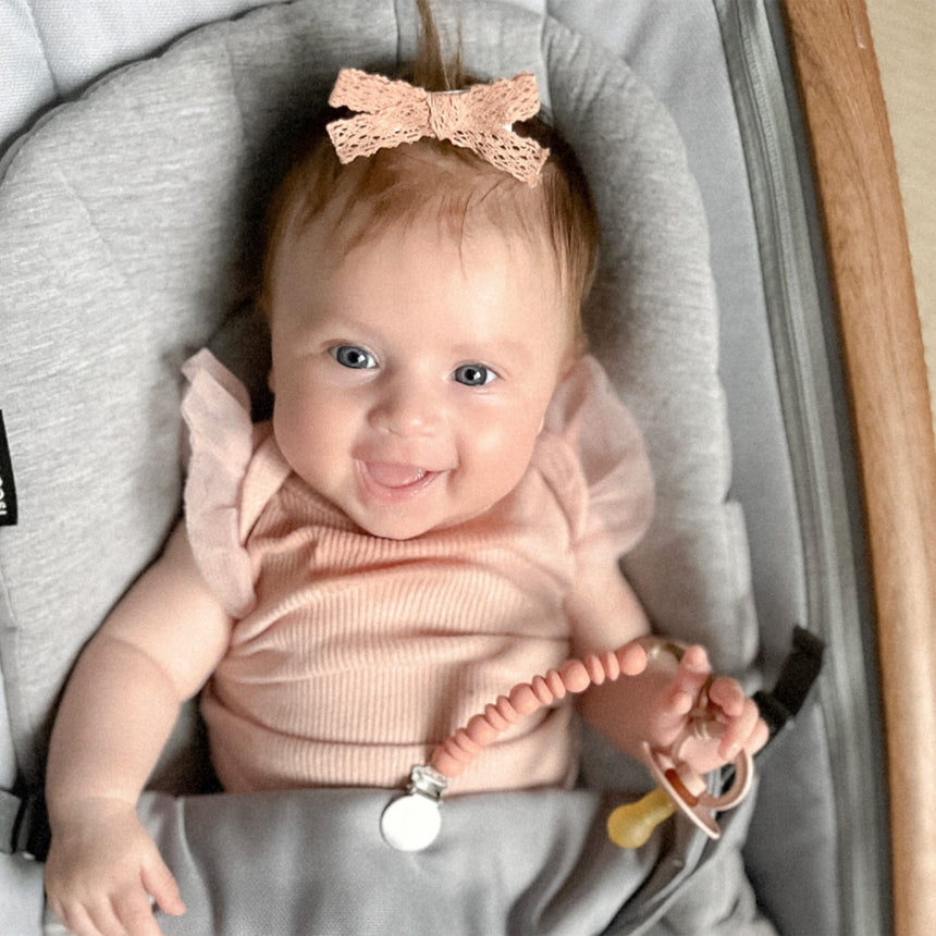 The chewable pacifier clip is an essential accessory for babies! It keeps the pacifier always within reach of the hand and the mouth and prevents it constantly falling on the floor! The pacifier clip is ideal for relieving the pain associated with teething. It's a fashionable, practical and fun accessory for baby!