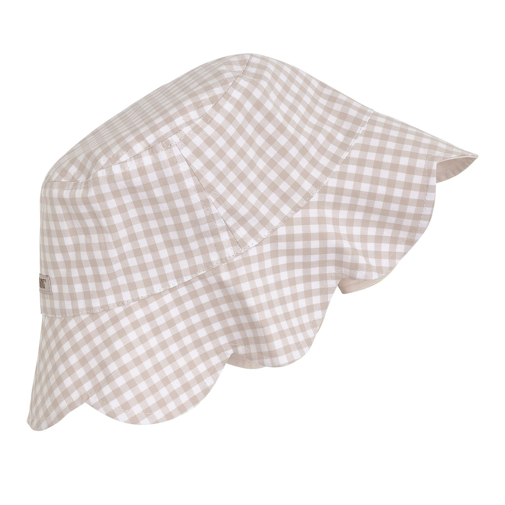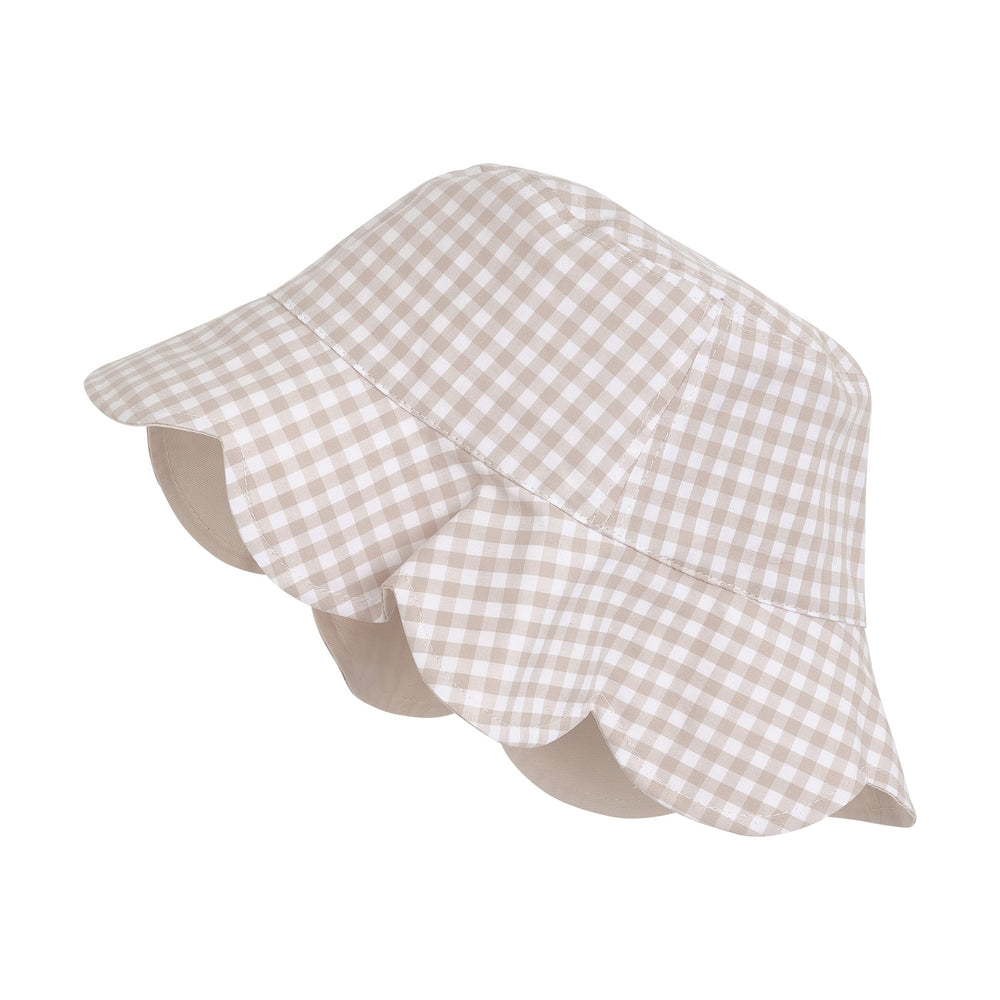 Cute solid colored bucket hat with scalopped edge from HUTTEliHUT. The hat is made from 100% cotton and Perfect for providing some shade on a warm summer day. With a logo label at back. Certified acc. to OEKO-TEX® STANDARD 100 Cert. No. 2276-364 DTI Tested and certified acc. to UPF 40+. To determine the UPF rating, the fabric is tested in both new and used conditions, following the UV STANDARD 801 method. The entire product is then CE-certified under PPE regulations.