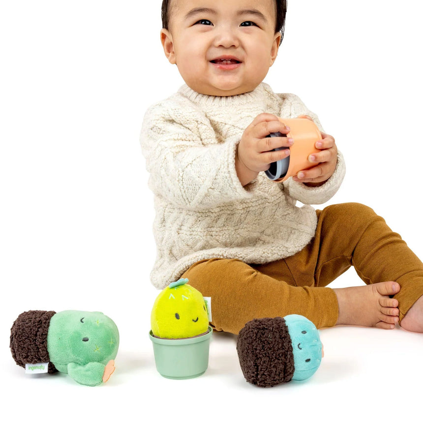 Prepare to see baby's eyes light up with happy awe alongside a coo of contentment from shaking the adorable plant rattles and hearing their soft sound. Remove plants and stack potters to help baby discover stacking?. The rattles and potters are made with safe materials such as soft fabric and BPA-free plastic, allowing parents to encourage baby's independent play with peace of mind. The nesting rattles are the perfect gender-neutral gifts for baby ages 3 months and up.