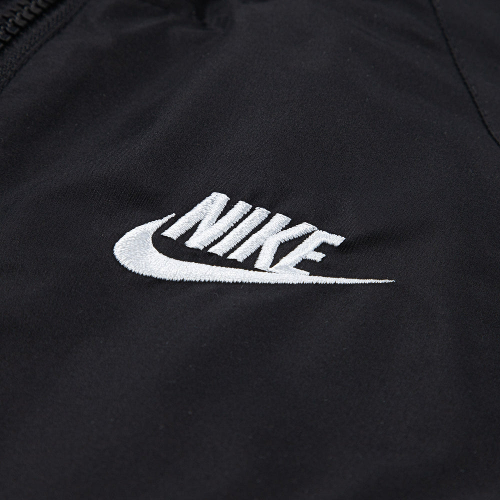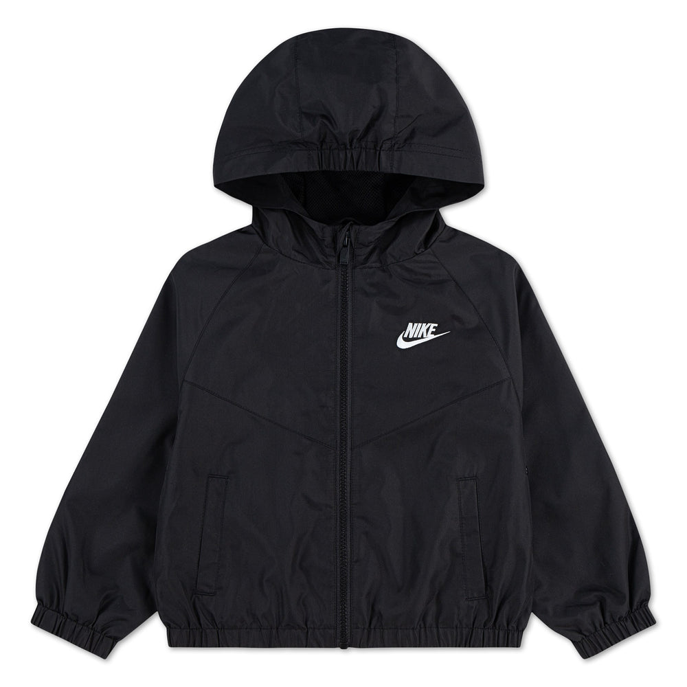 No such thing as a rain delay with this Nike windbreaker jacket, which features signature chevron seam work, a full-zip closure for easy layering, and provides lightweight warmth. Pockets on the sides come in handy for stashing small essentials, the cozy hood and water-resistant finish help kiddos stay dry in light rains, and the elasticized cuffs and hem help secure the fit against wind gusts.