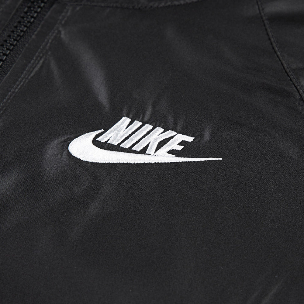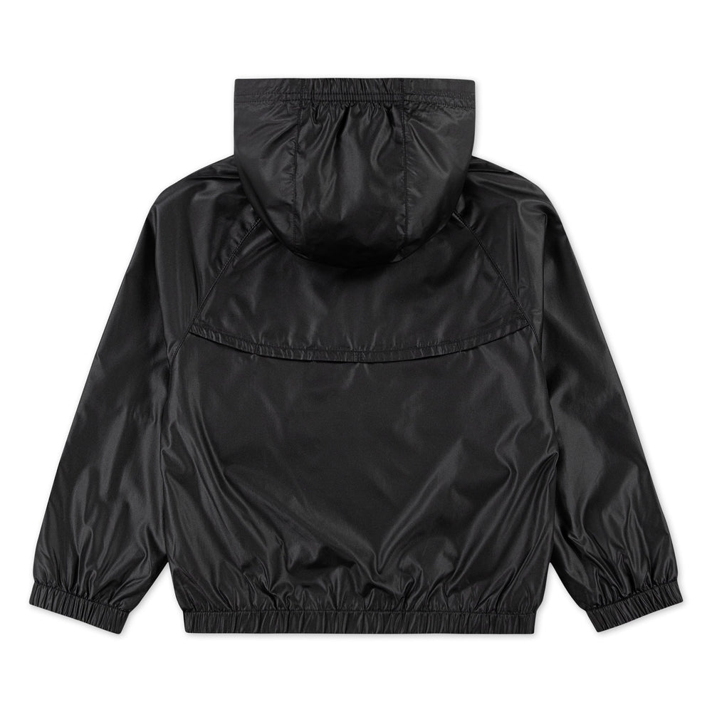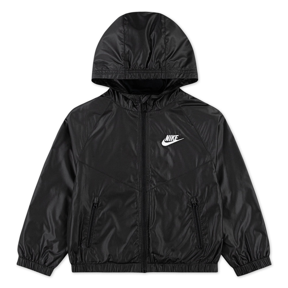 No such thing as a rain delay with this Nike windbreaker jacket, which features signature chevron seam work, a full-zip closure for easy layering, and provides lightweight warmth. Pockets on the sides come in handy for stashing small essentials, the cozy hood and water-resistant finish help kiddos stay dry in light rains, and the elasticized cuffs and hem help secure the fit against wind gusts.