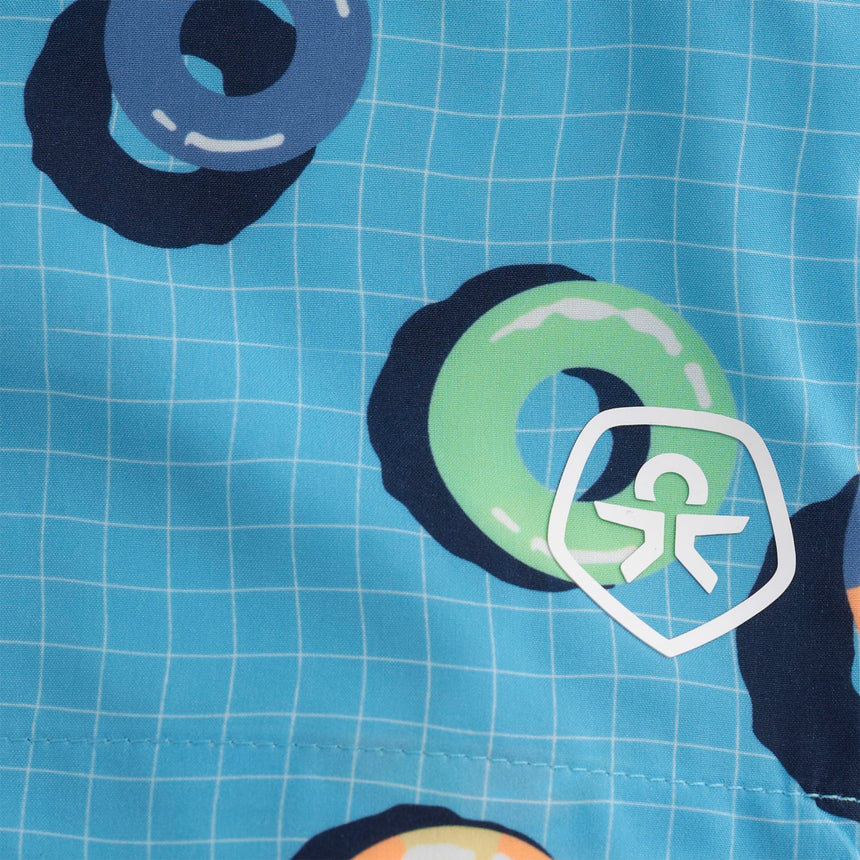 Cool swim shorts with a loose fit and drawstrings that you can tighten at the waist. Elastic around the waist. The swim shorts are all-over-printed, dries quickly and has Color Kids logo. Certified acc. to GRS -Made with 34% Recycled Material CERES-0366. Certified acc. to OEKO-TEX® STANDARD 100 Cert. No. 2476-411R DTI. Fabric: 90% polyester / 10% elastane