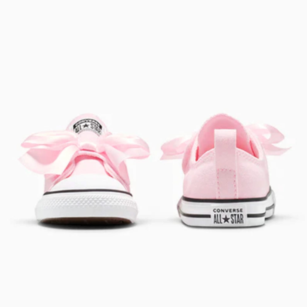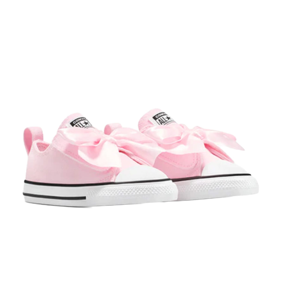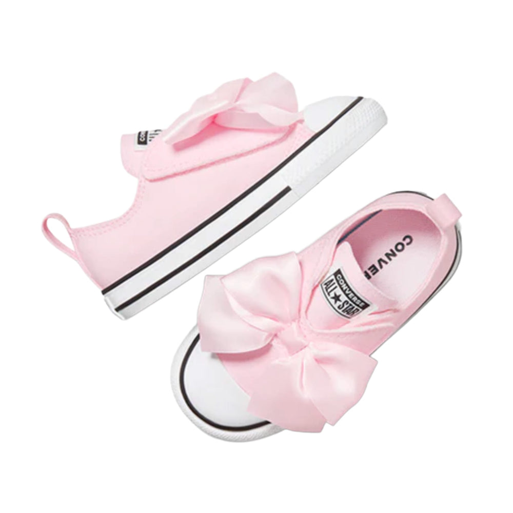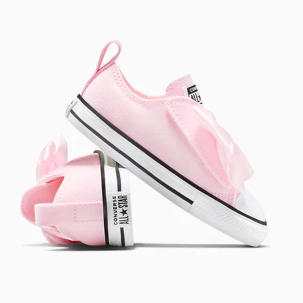 - Adjustable strap with decorative bow and heel loop for easy on and off