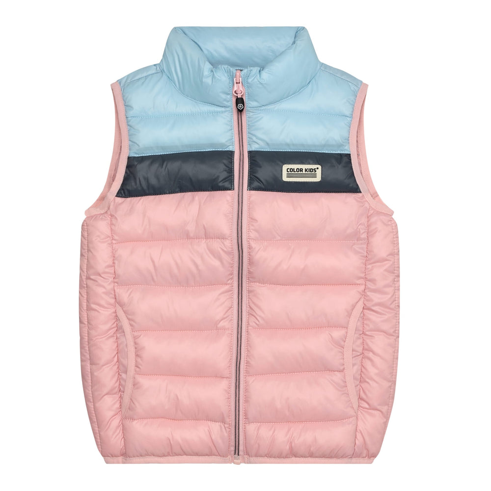 BIONIC FINISH® ECO Multicolored unisex vest with soft padding from Color Kids. The vest is breathable and has a water- and dirt-repellent surface. A small fabric guard at the end of the zipper provides extra comfort at the chin. The vest is equipped with pockets and reflective details. Coated with BIONIC FINISH® ECO