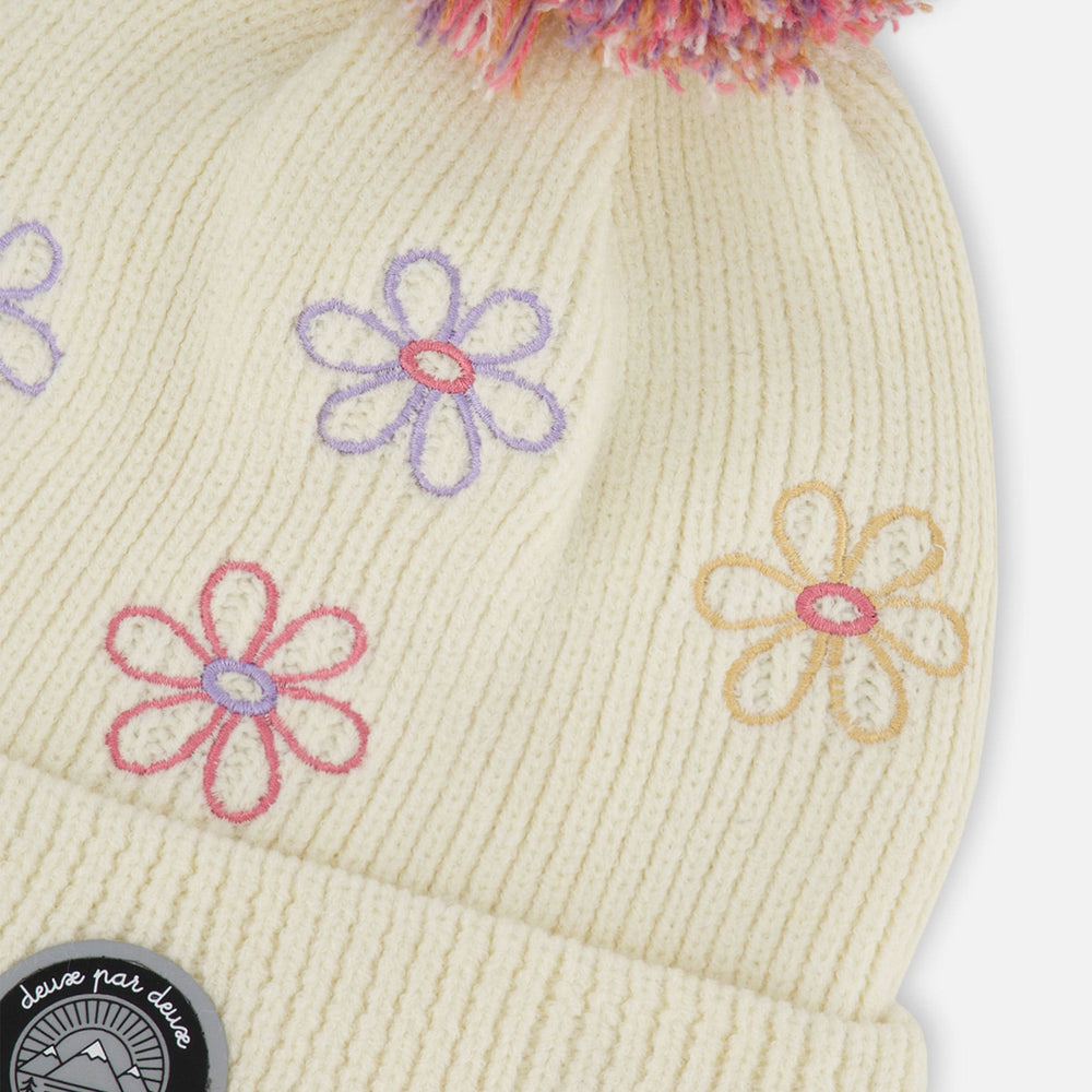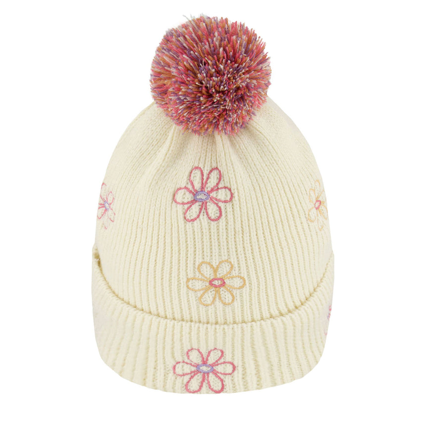 Stitched with flowers and trimmed with a rib knit cuff, this pompom beanie hat is designed to keep little heads warm on the coldest days. A logo patch adds signature style, while a polar fleece lining provides added warmth and protection.