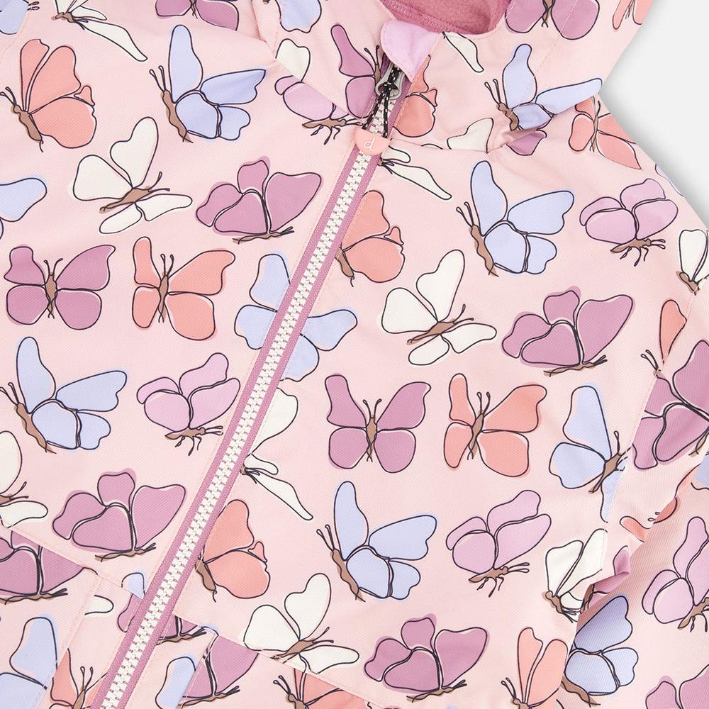 Designed for every season’s surprise, this 3-in-1 mid-season outerwear set in purple with daisy print offers versatility, warmth, and eco-conscious comfort. It includes a jacket, removable polar fleece jacket, and coordinating solid pants, all crafted with recycled materials and treated with a fluorocarbon-free BIONIC-FINISH® ECO coating for lasting protection. With a fleece-lined hood, taped seams, reinforced knees, and reflective details, this set adapts to changing weather while keeping your girl cozy and dry.