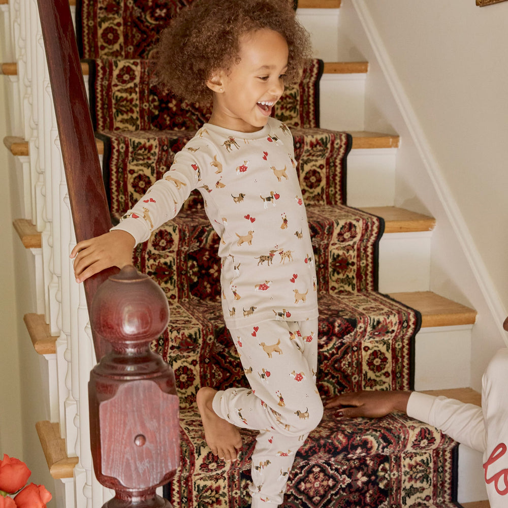 Let them dedicate Valentine’s Day to their one true love – their furry friend – with these adorable PJs with all-over puppy print. With sizes available for toddlers and big kids, and matching sleepers for younger siblings, the whole gang is ready for a day of snuggles on the sofa. Made from organically grown cotton rib, the set is light, gentle and breathable – keeping them at the perfect temperature while they doze off, cuddle or chase the dog.
