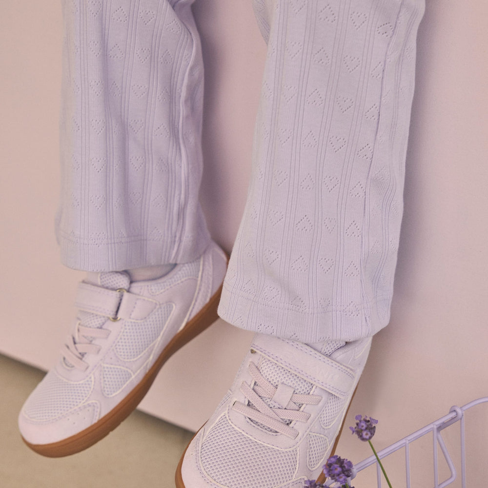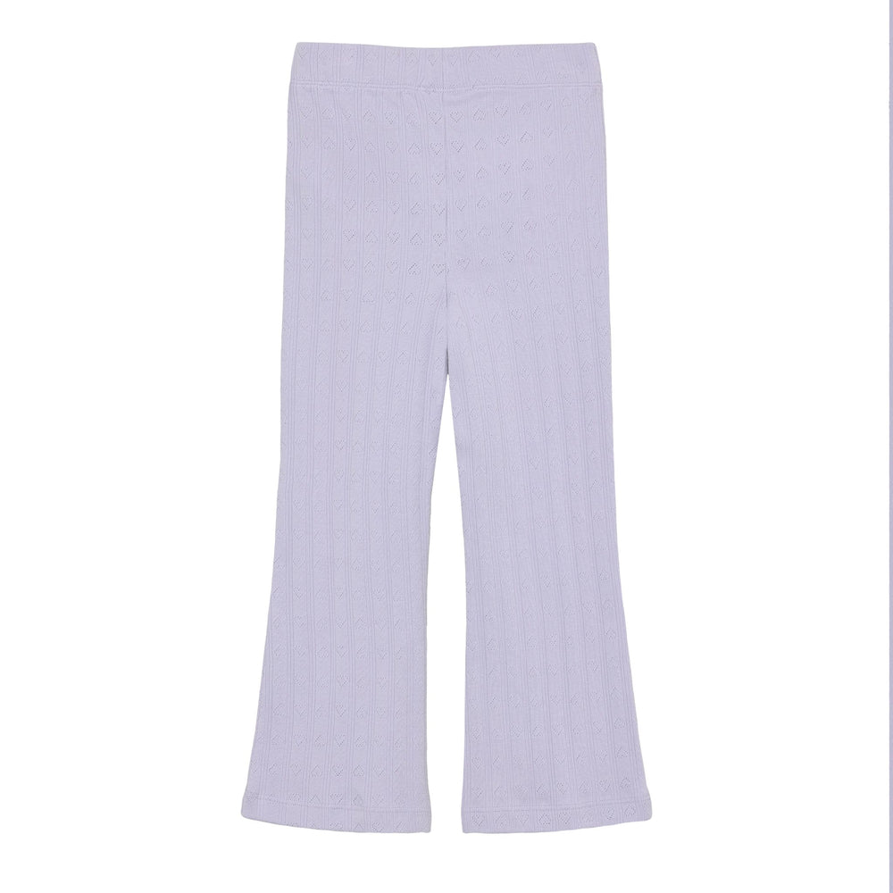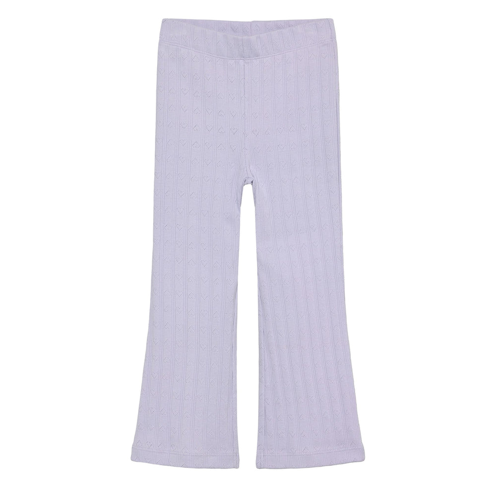 Leggings with wide legs from EN FANT. These leggings have elastic at the waist and they are made in a poitelle with a heart pattern.