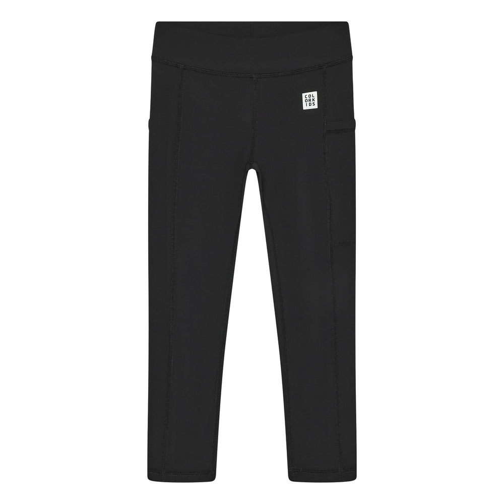 Sports tights from Color Kids. The solid-colored tights are made from stretchy material and have a snug fit. A small print decorates the hip area.