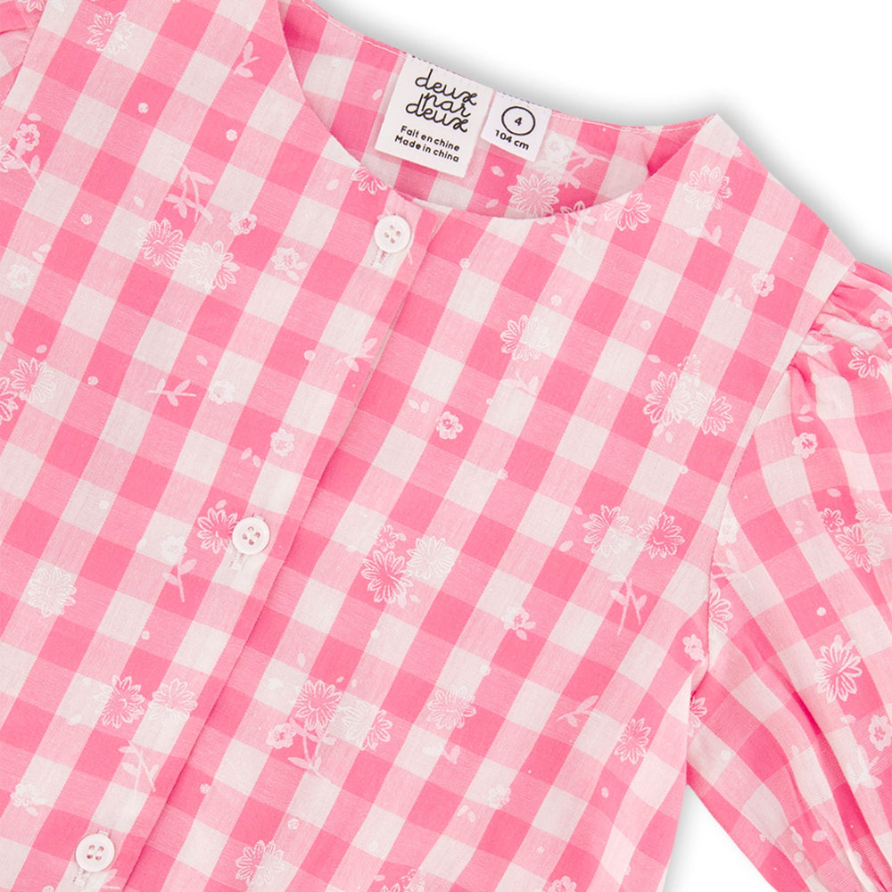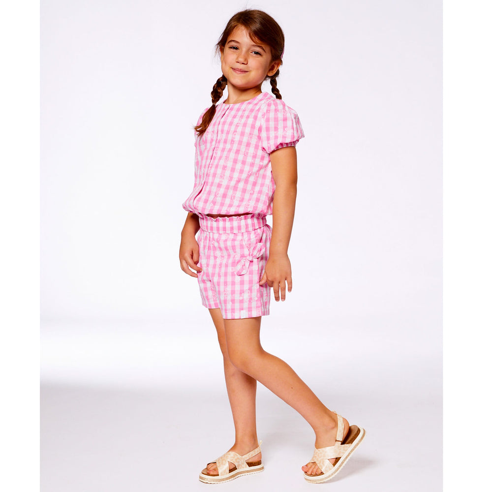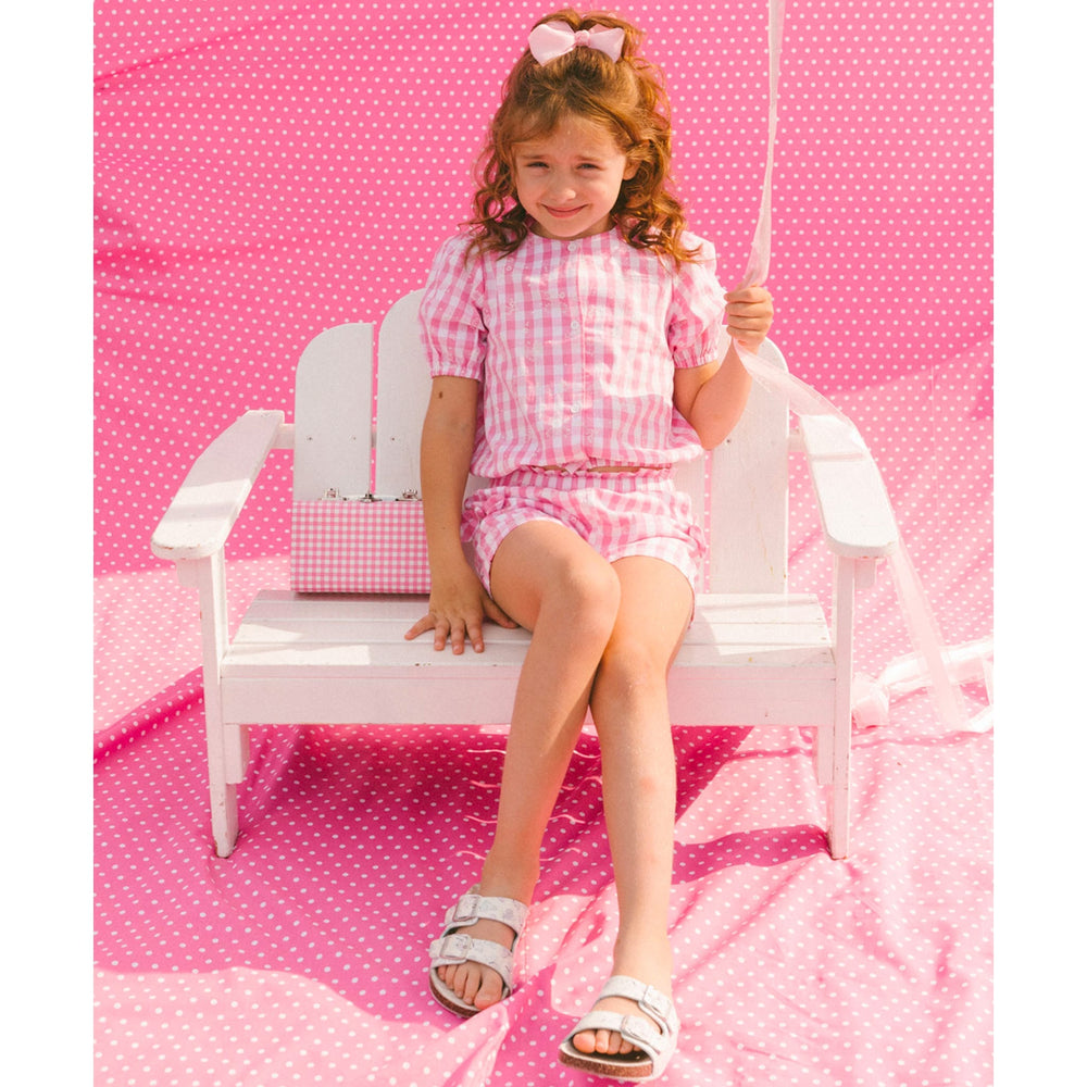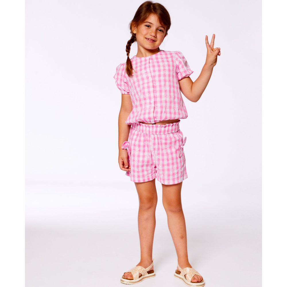 Puffed sleeves and a bold plaid print make this pink and white plaid puff sleeve top an eye-catching choice for any spring or summer day! Made from soft cotton, this top has short puff sleeves, a round neck, an elastic hem, a button placket to the front and a check and floral print. Pair it with matching shorts for a perfectly coordinated look!