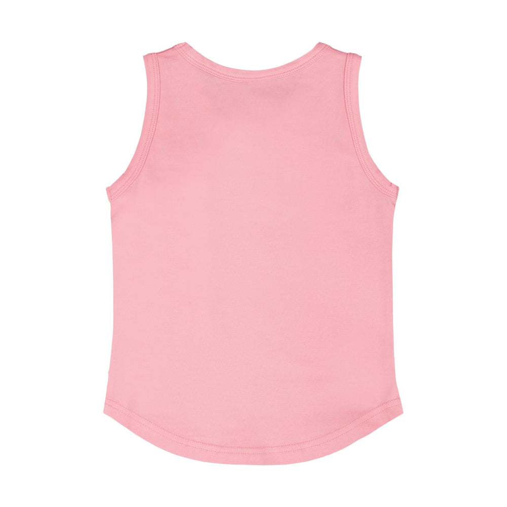 This organic cotton jersey tank top in pink is a sweet essential for sunny days. The sleeveless tee with a round neckline is finished with a printed cherry at the front for a playful accent. Made in organic cotton jersey with added stretch, it is soft, breathable, and comfortable for everyday wear.