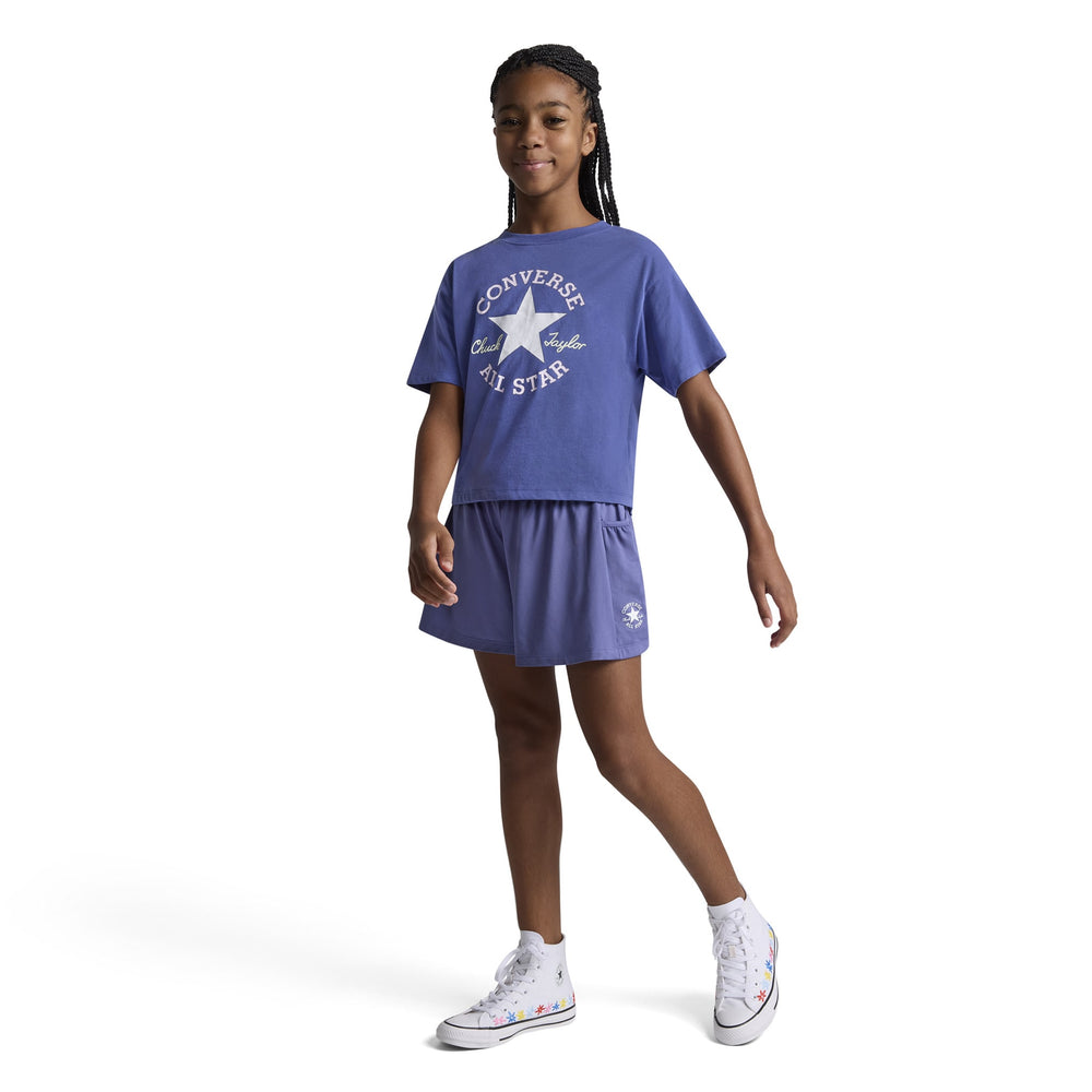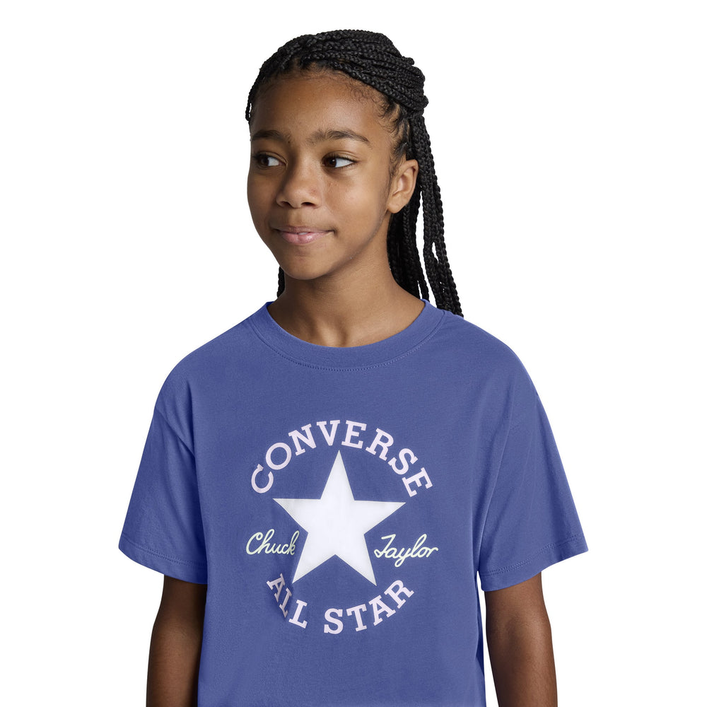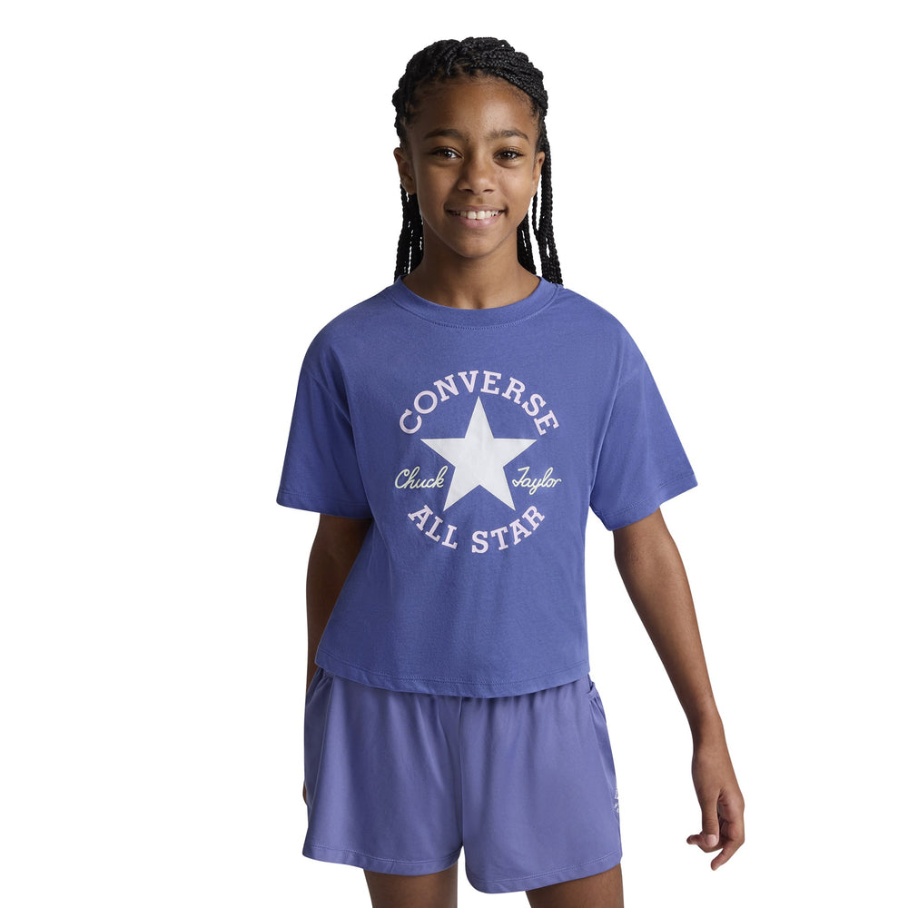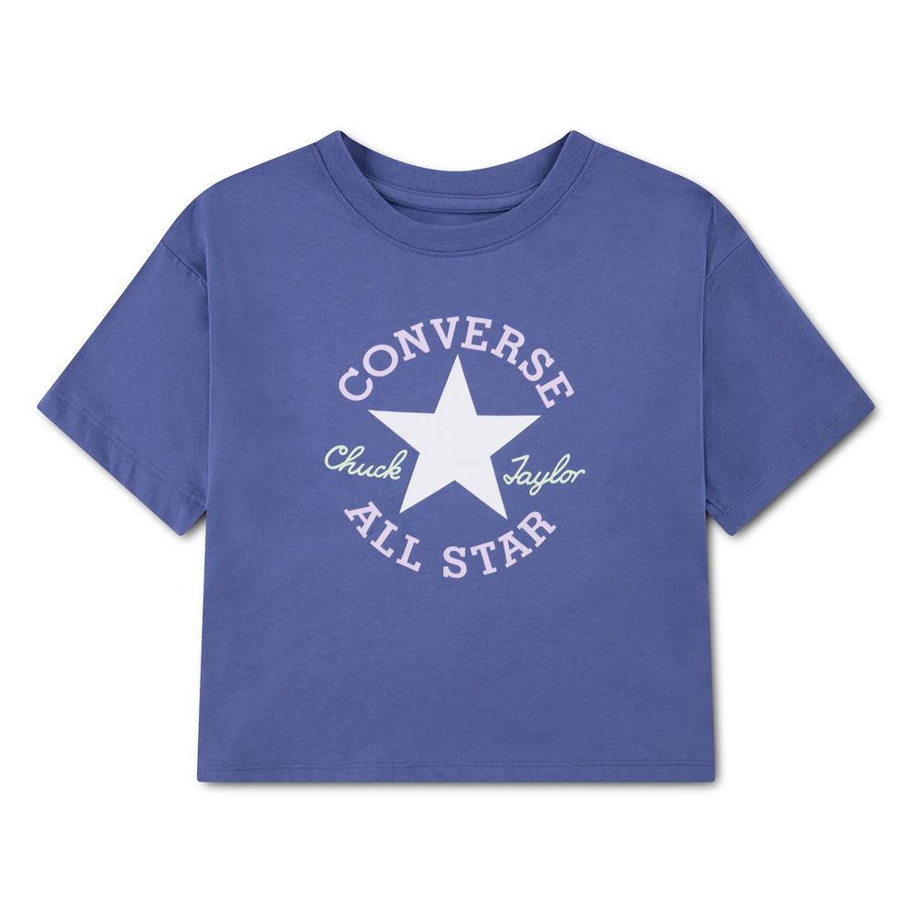 This boxy tee from Converse is an wardrobe essential comfy enough for everyday wear. It's made of soft jersey in a boxy silhouette that creates a cropped look while providing coverage, with dropped shoulders that relax the fit, and finished with the Chuck patch logo for signature Converse style.