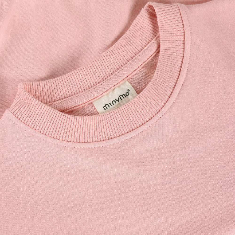 Sweatshirt from Minymo. The sweatshirt is solid-colored with prints on the sleeves. The sleeve and neckline hems are ribbed, and the bottom hem is elastic. Made with certified organic cotton. Certified acc. to GOTS - organic CERES-0366