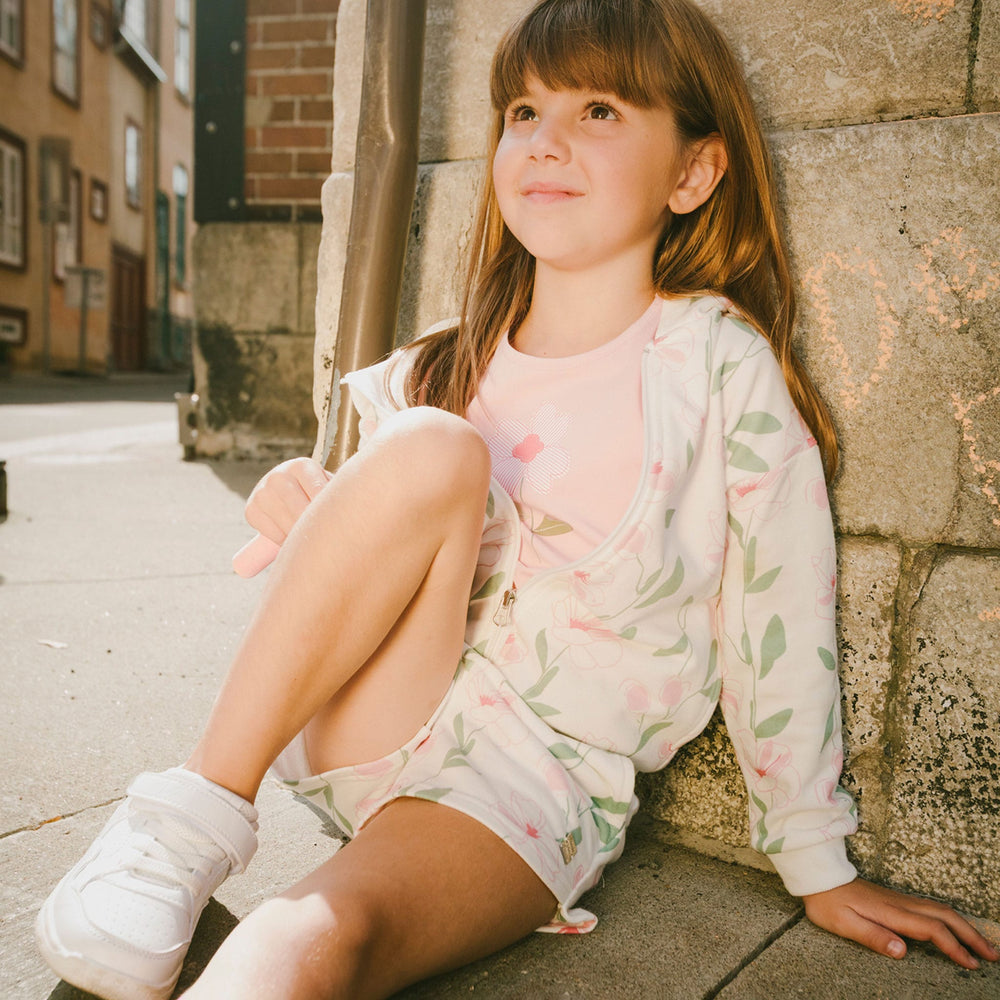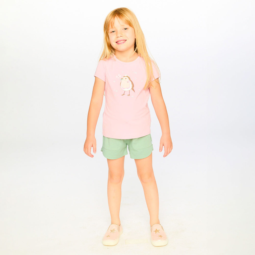 Our organic cotton jersey t-shirt in off-white is a soft and playful piece for warm-weather days. This tee features a straight cut with short sleeves, a round neckline, and a dreamy window-and-garden print on the chest. Made from organic cotton with a touch of stretch, it offers natural comfort and ease for everyday adventures.