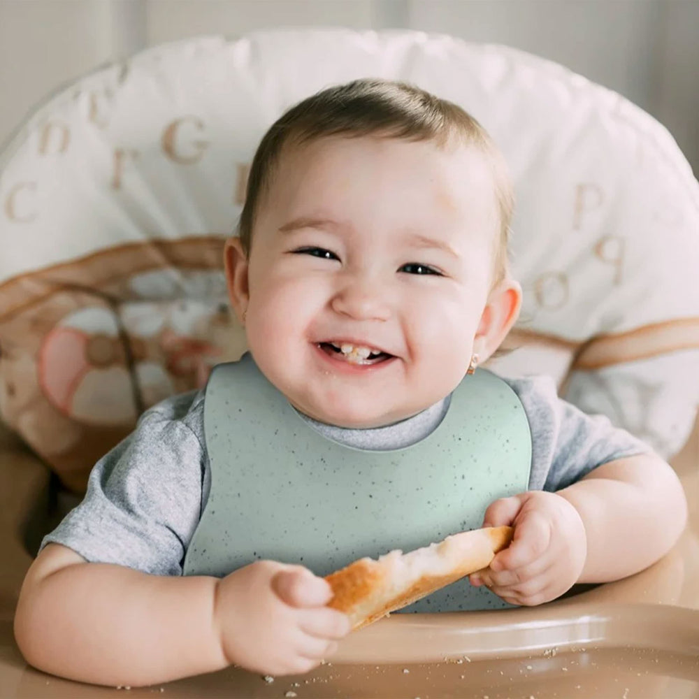 Le silibib est fait de silicone alimentaire ultra doux offert dans une variété de couleurs ludiques. Léger pour un ajustement confortable et réutilisable après chaque repas !