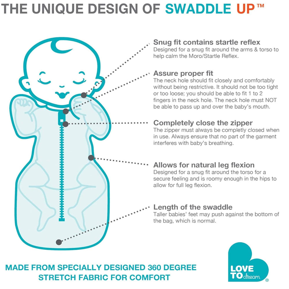 -With the Swaddle UP, no difficult wrapping techniques are required and no risk of dangerous loose blankets in your baby's crib< br />-The Swaddle UP's double-zip design allows you to change diapers while keeping baby swaddled and has no pesky snaps, noisy Velcro, or fiddly wrapping, ensuring your baby stays comfortably swaddled all night long.