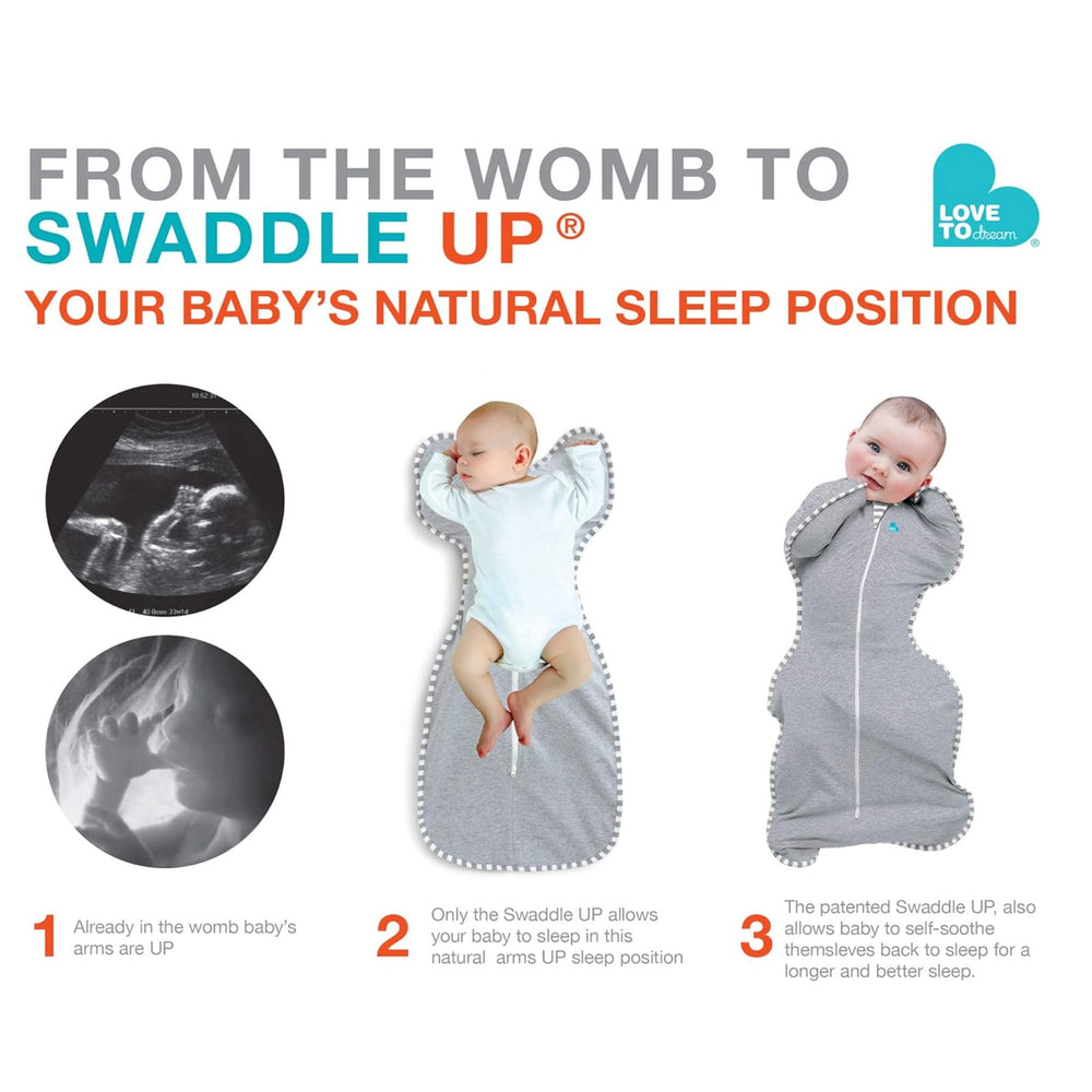 The innovative SWADDLE UP SILKY-LUX™ with patented wings allows babies to sleep in a more natural position, with their ARMS UP™, so they can self-soothe by sucking their hands and touching their face. Medical research has shown that when babies can self-soothe, they sleep longer. The SWADDLE UP™ is intended for use from day one™ and can help parents establish a solid foundation for sleep, right from birth.
