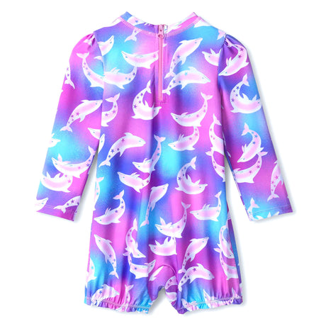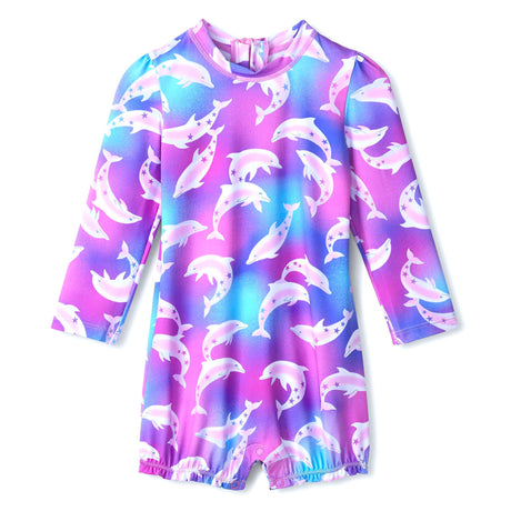 Fall for our one-piece swimsuits designed for the comfort and safety of toddlers. Made from stretchy, quick-drying fabrics, they offer a snug fit that stays in place during water play. Often featuring built-in UV protection and pretty details like ruffles or prints, these swimsuits combine style and functionality to fully enjoy the summer.