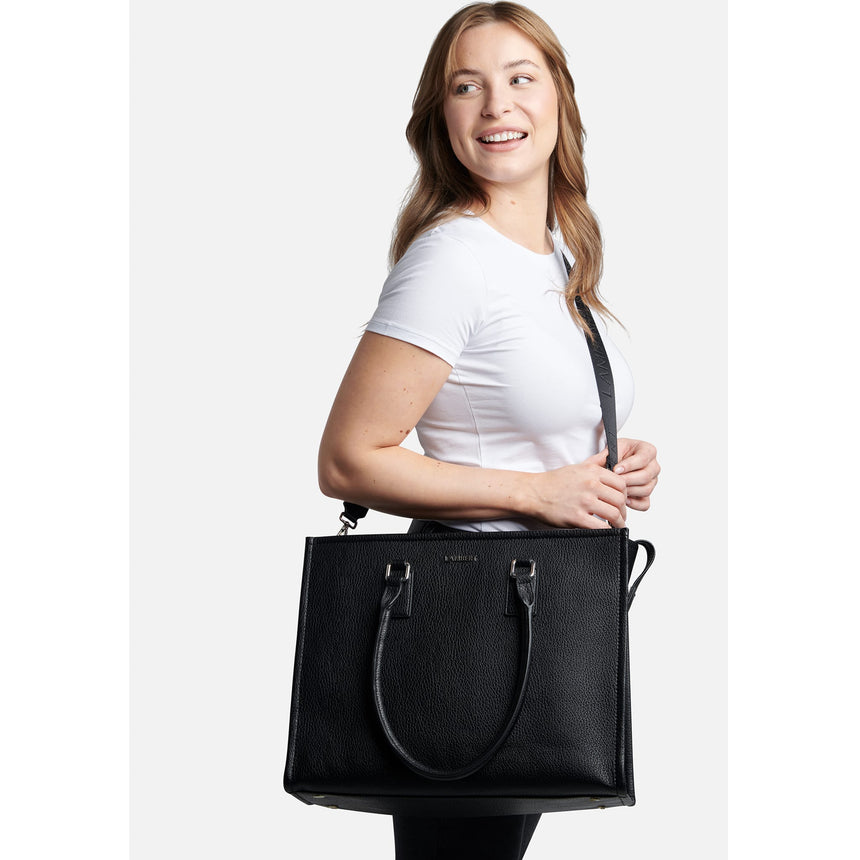 Sleek and minimalist, the Valentina adapts to any style, whether you're at work, school, or traveling. This tote bag is designed to fit your modern lifestyle. Featuring a padded compartment, it can hold a 16-inch laptop, a water bottle, documents, electronic accessories, and more. Easily wear it over your shoulder or across your body thanks to the included nylon strap, which is adjustable and removable for optimal comfort.