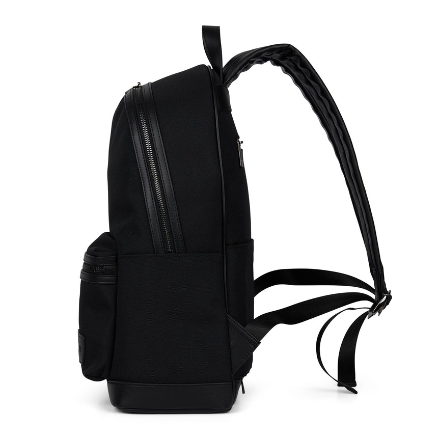 The Logan in black canvas strikes the perfect balance between utilitarian style and practical organization. Its sleek silhouette fits easily into any routine, whether for work, school, or on the go. The well-organized interior keeps everything close at hand: water bottles, a laptop, tech essentials, and accessories. An exterior phone pocket and trolley strap complete its practical features for busy days.