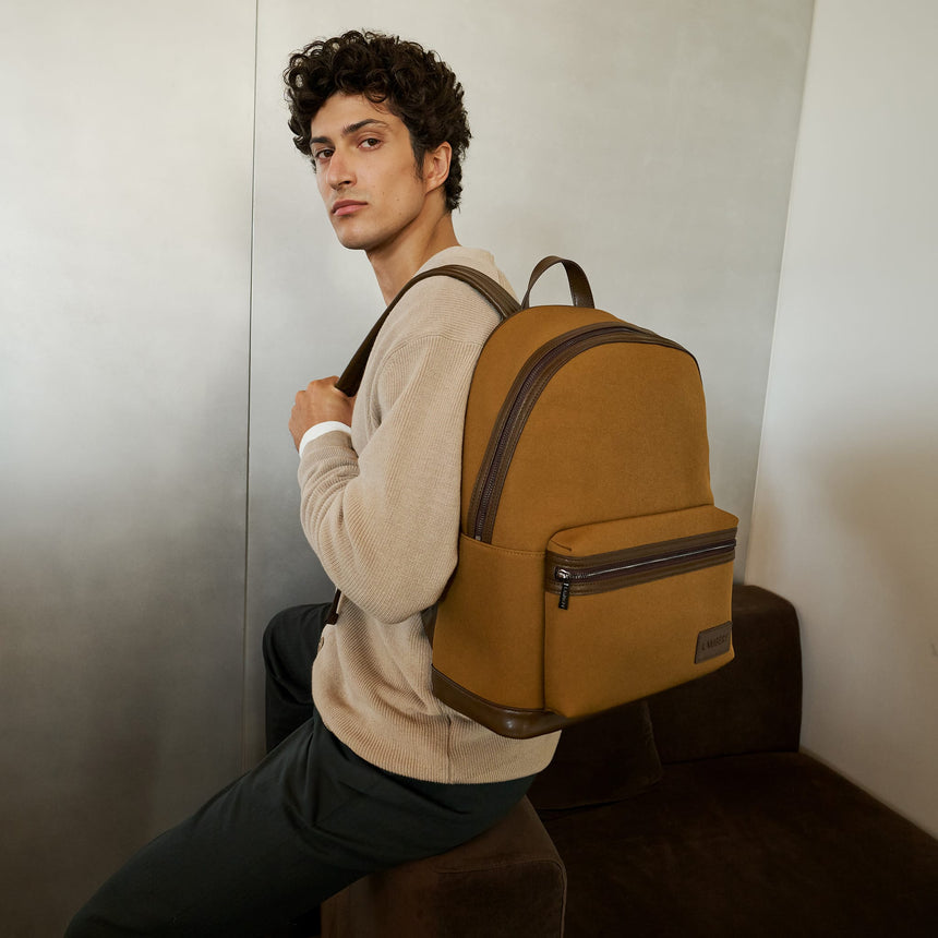 The Logan in black canvas strikes the perfect balance between utilitarian style and practical organization. Its sleek silhouette fits easily into any routine, whether for work, school, or on the go. The well-organized interior keeps everything close at hand: water bottles, a laptop, tech essentials, and accessories. An exterior phone pocket and trolley strap complete its practical features for busy days.