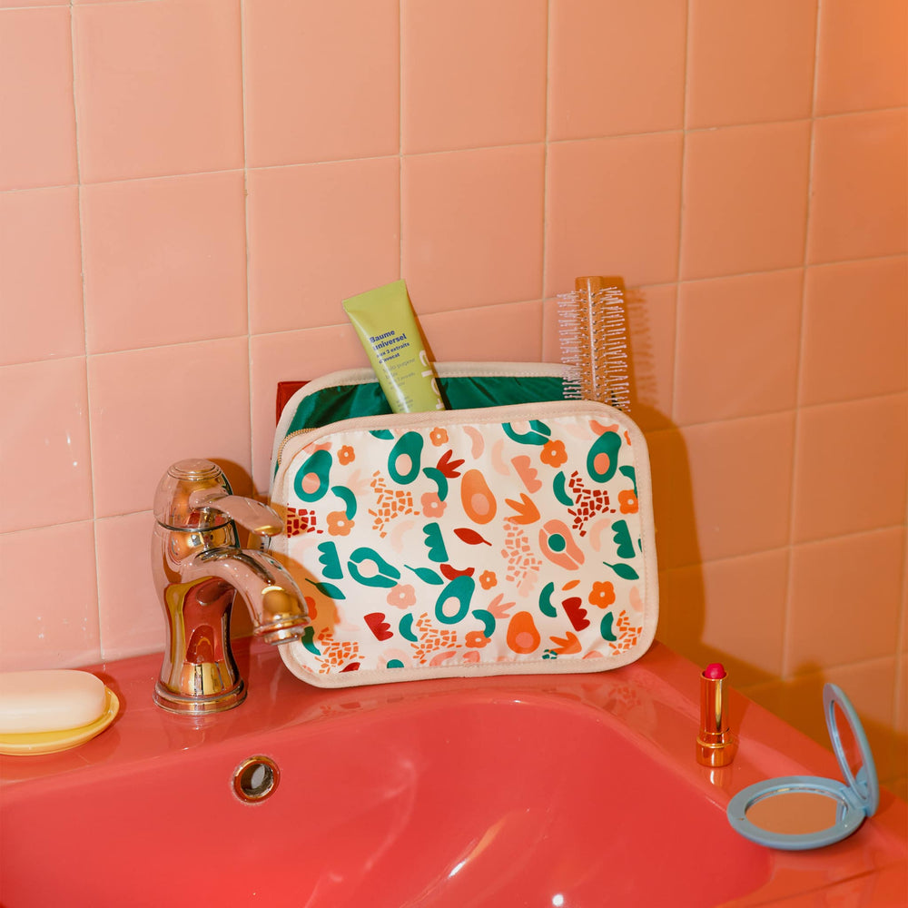 Presented in a beautiful vanity case in trendy colors, these products are combined in a practical kit made primarily from recycled plastic. Featuring an interior compartment for optimal storage and a removable exterior pocket, it's ideal for keeping everything close at hand. Its large size (25 x 18 x 9.5 cm) allows you to store many essential products for both baby and mom.