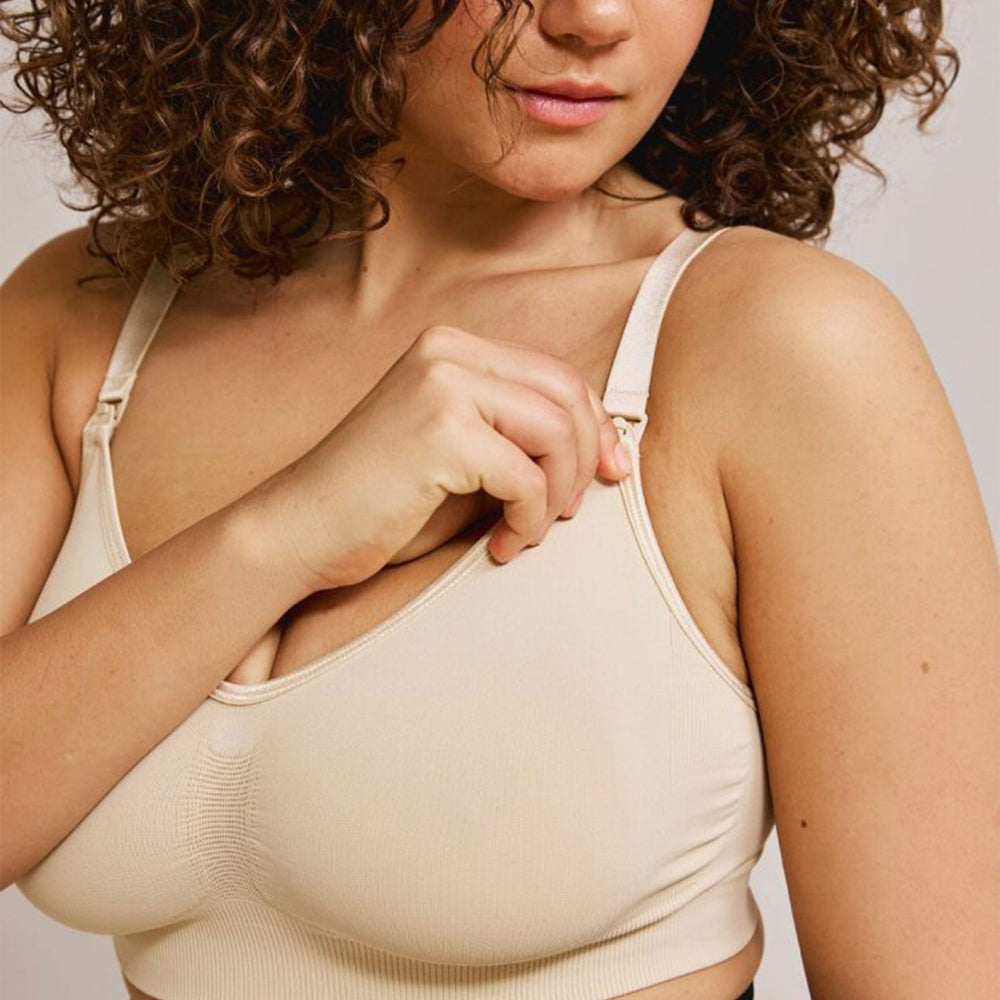 The Carriwell Seamless Nursing Bra is a soft, comfortable bra that adapts to changes in your body. The one-handed clasps allow full breast exposure while breastfeeding, maximizing skin-to-skin contact between you and your baby.