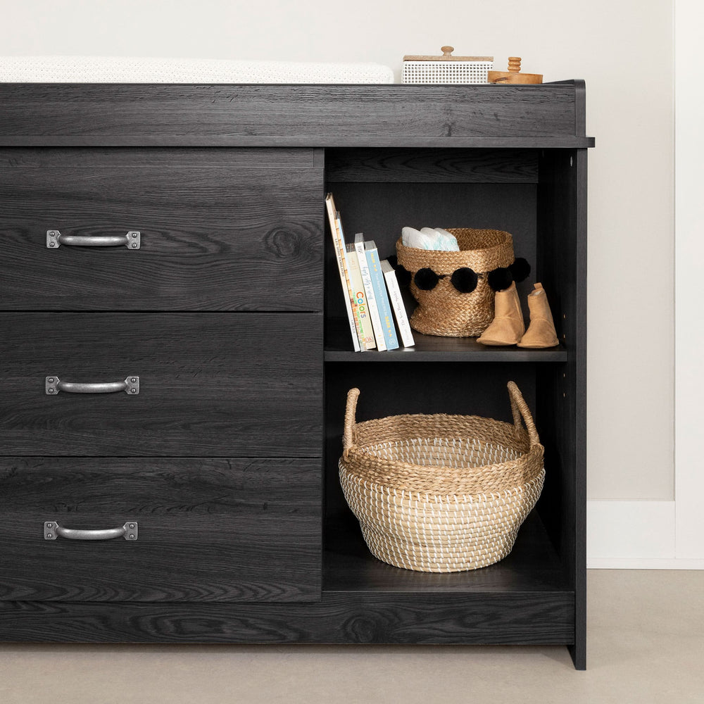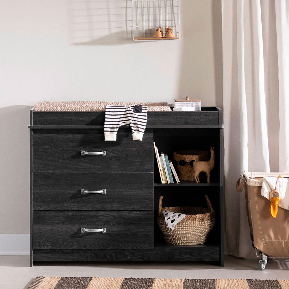 A rustic changing table Of course it's important to set up the perfect little cocoon before baby arrives! Aside from meeting all your needs, this changing table will add that much sought after rustic look to your newborn's room. Its metal handles are very trendy, and they’ll add a charming, natural, soothing style to your decor. Storage for all of baby’s accessories A baby needs a lot of things. And you can keep all the accessories in one place, since this piece is packed with storage space. Three open spaces separated by two shelves (one adjustable) have been set up for the things you use often or want to keep close at hand, such as diapers. Pajamas, clothes, and blankets will find a home in one of the three large drawers.
