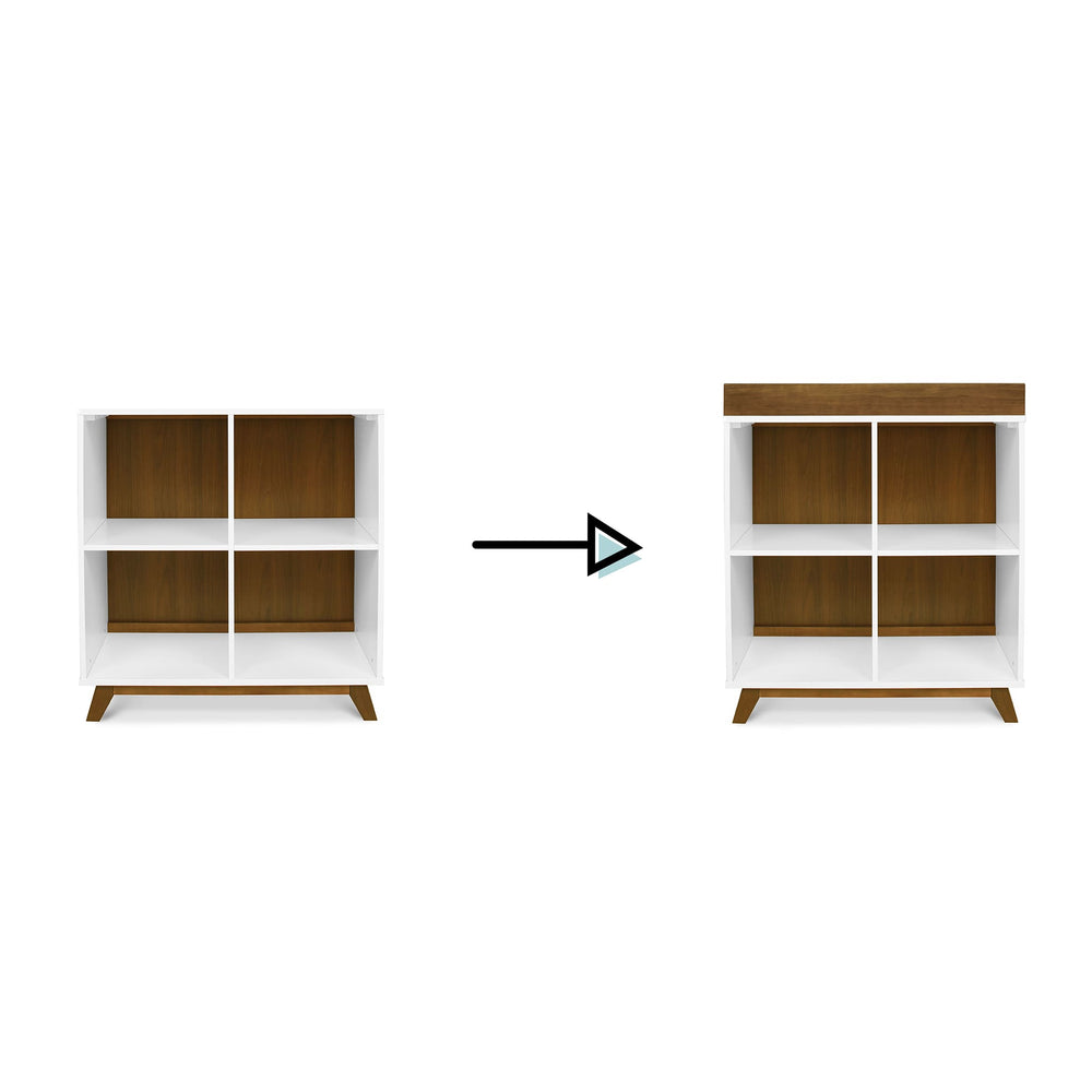 Otto Convertible Changing Table and Cubby Bookcase - White / Walnut