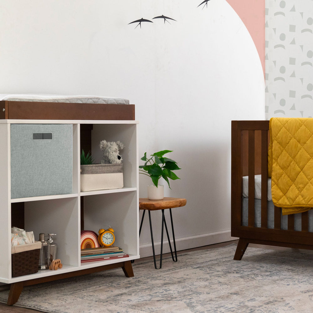 Modern and versatile, the Otto Convertible Changing Table and Cubby Bookcase is a timeless staple for your nursery now, and big kids’ room later. Featuring a changing station on top, it also has four spacious cubbies for storage and easy access to all your diaper changing needs. When the time comes to transition, the changing tray can be removed and cubbies used as a bookcase to display all your babies’ story time treasures.
