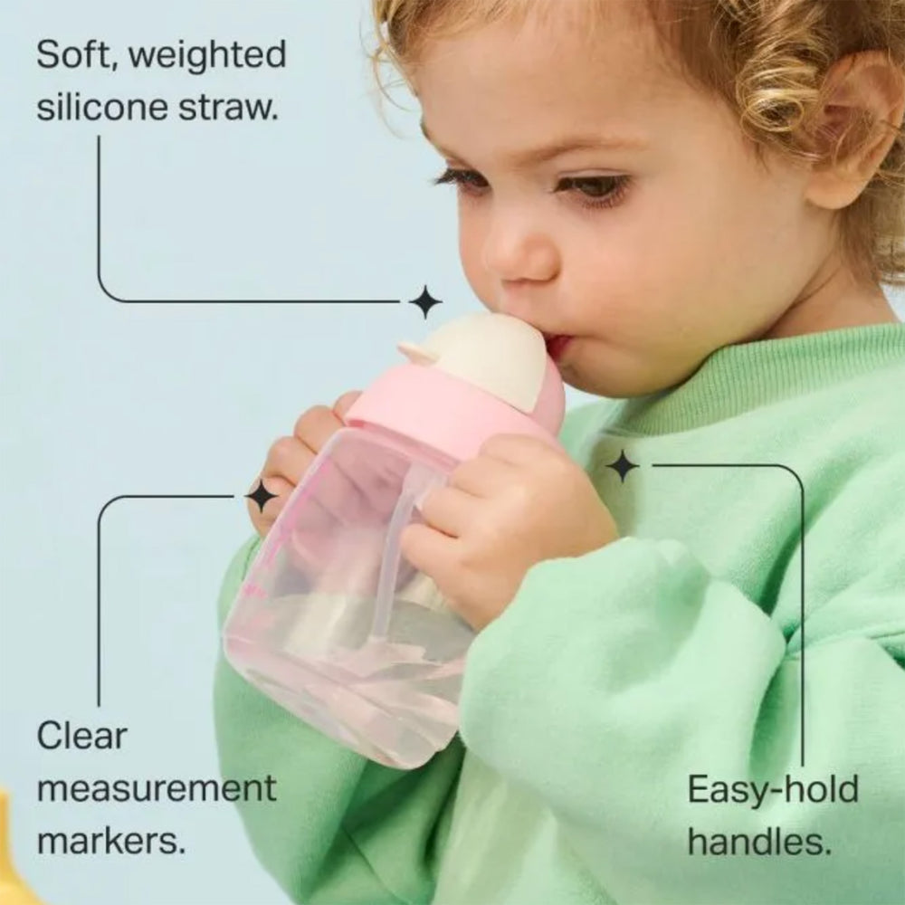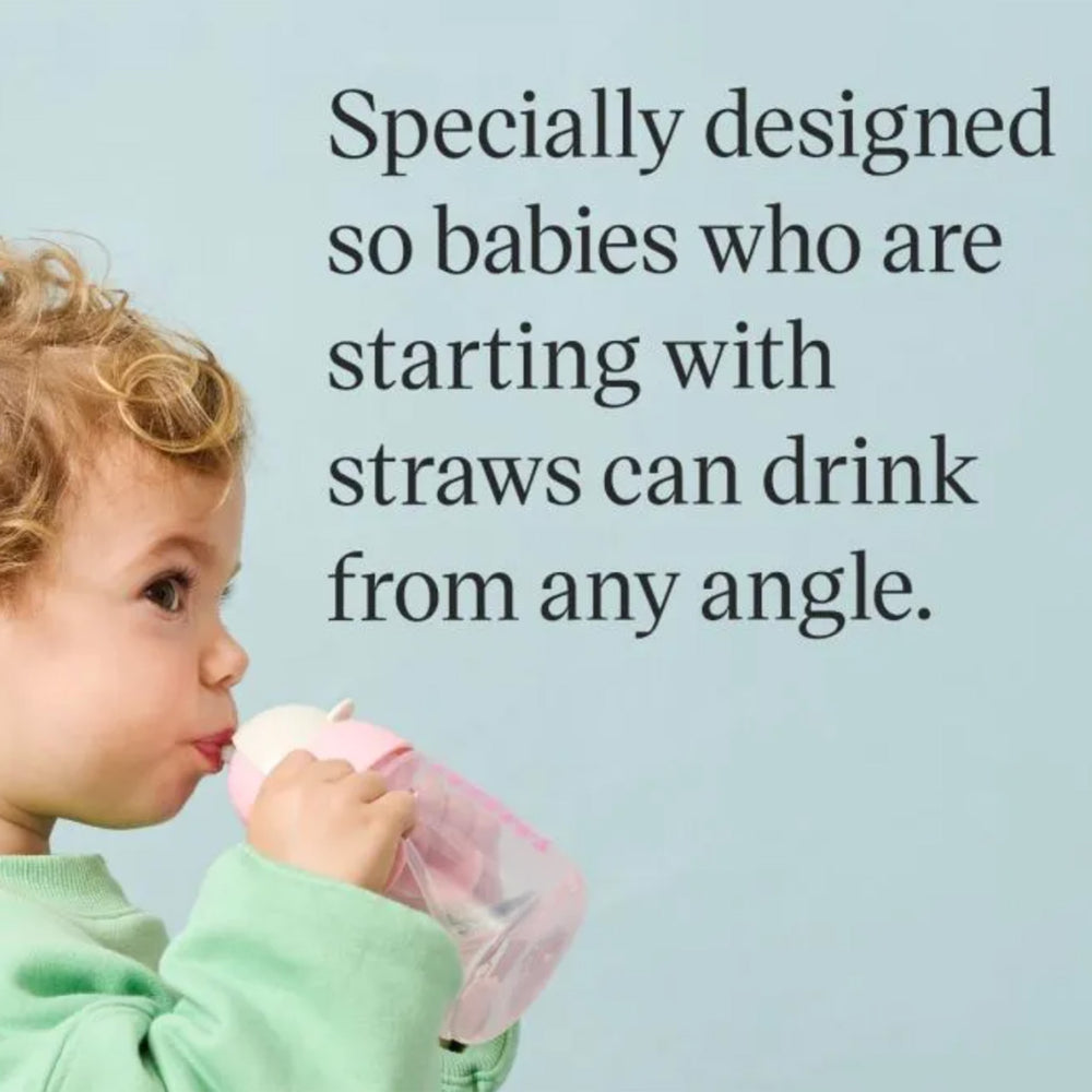 The baby cup that's designed so they can drink from any angle. Perfect for babies starting with straws from 6 months up. The clever two-piece valve stops leaks, so no messy spills when they're transitioning from a bottle and learning to sip.