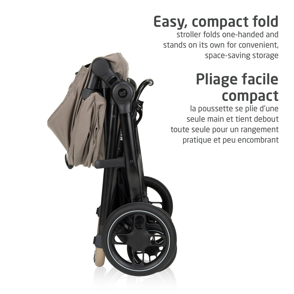 -Self-Standing Fold: Compact fold design allows the stroller to stand upright on its own for convenient and space-saving storage.