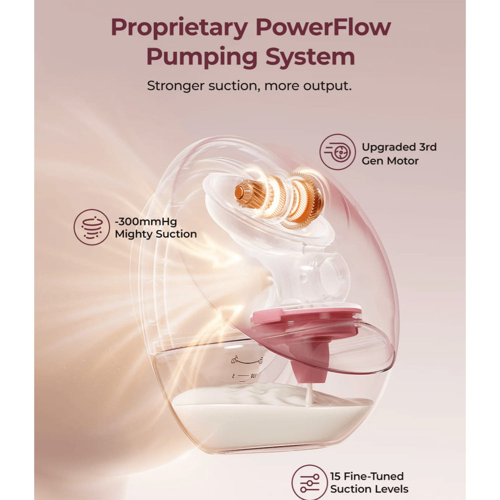 The 3rd-gen pump motor offers powerful suction up to -300mmHg to increase milk output