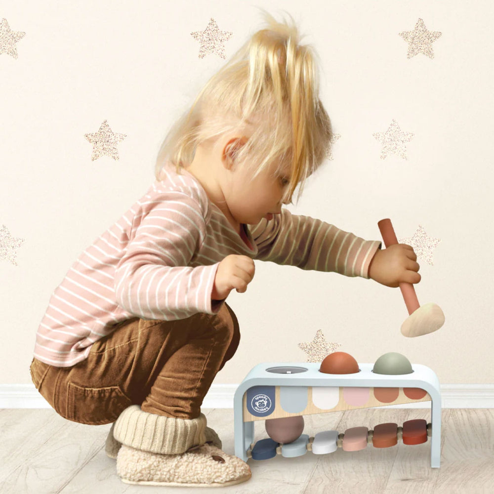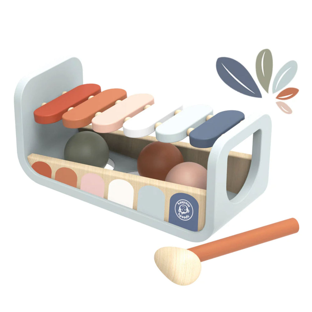 - Includes three balls that your little one can hammer into the slots and slide onto the wooden xylophone underneath