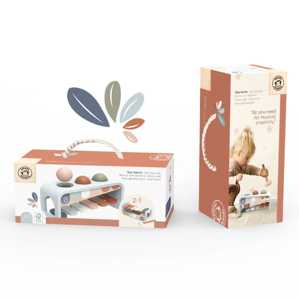- This all-wooden 2-in-1 Xylo "bench" is colorful, durable, and safe with no rough or sharp edges