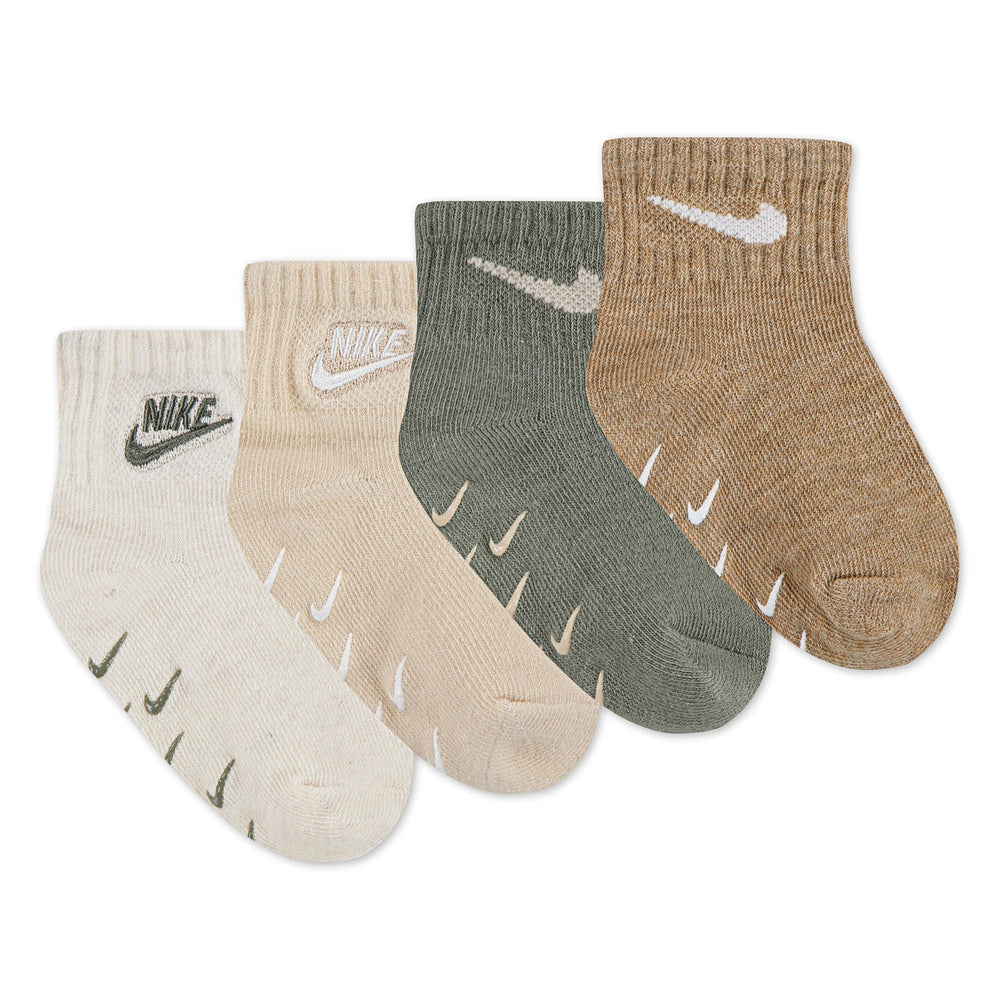 Keep your little one active and secure with these Nike Logo Gripper Socks. They're made of soft and stretchy fabric, plus each sock features ribbed cuffs, a gripper pattern at the sole, and an iconic Nike detail.