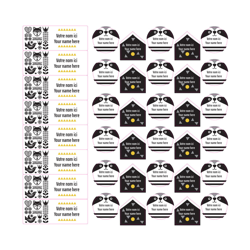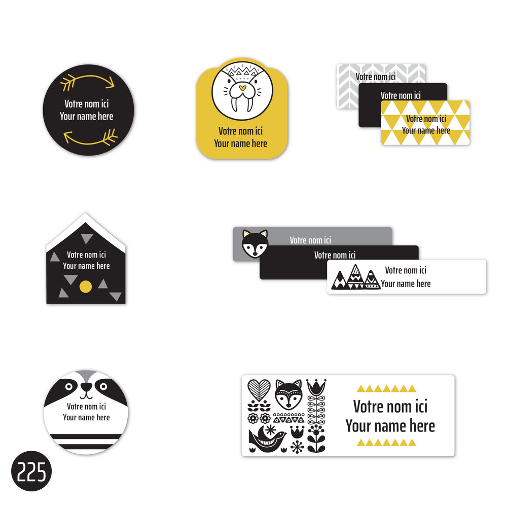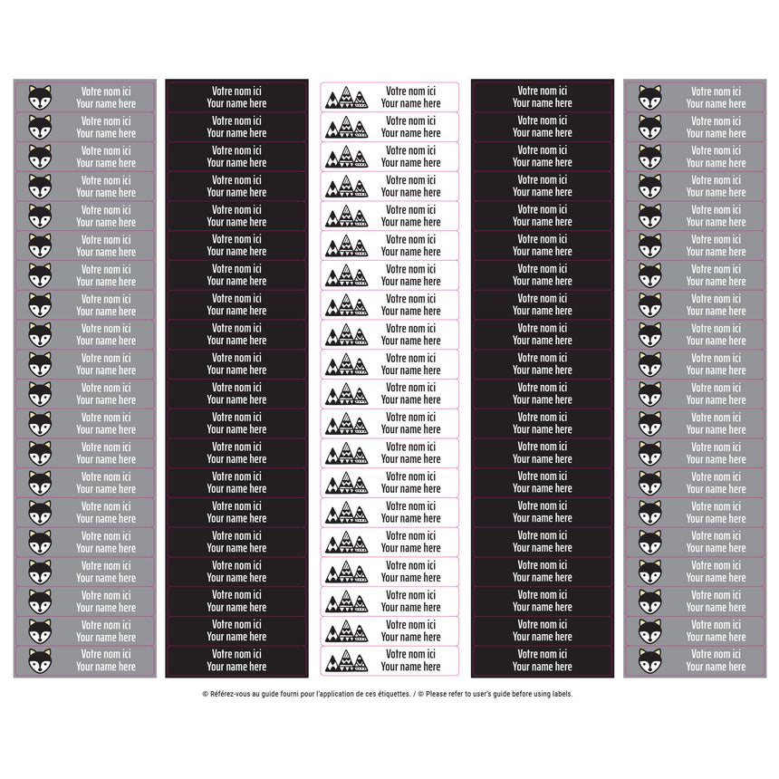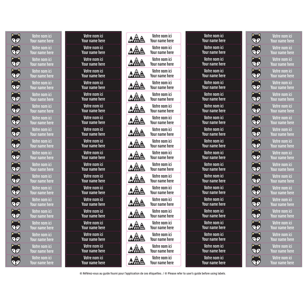 It contains 225 self-adhesive labels of various sizes to effectively identify any type of item. The labels are resistant to water, cold, heat, and steam. They are dishwasher, washing machine, dryer, microwave, freezer, and refrigerator safe. No ironing required: apply them to a clean, dry surface, then wait 24 hours before exposing them to moisture or heat. The name and/or phone number is printed on two lines of 16 characters.