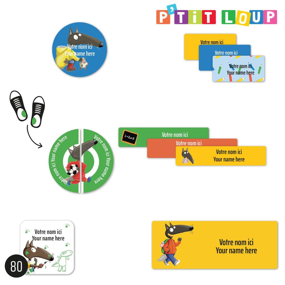 The Classic Edition is perfect for getting started with identification. It offers a range of convenient sizes for labeling everyday essentials, both at home and on the go. It contains 80 self-adhesive labels in various sizes, including 4 pairs for shoes, allowing children to easily identify the correct foot. Resistant to water, cold, heat, and steam, they are dishwasher, washing machine, dryer, microwave, freezer, and refrigerator safe. With no ironing required, simply apply them and wait 24 hours before exposing them to moisture or heat. Each label is personalized with a name and/or phone number printed on two lines of 16 characters.