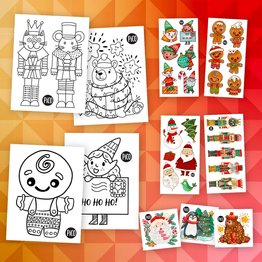 Celebrate the holiday season with our Holidays Surprise Set! Ideal for advent calendars, magic boxes, or Christmas stockings, this set features small coloring pages and tattoo sheets for festive surprises. Limited edition.